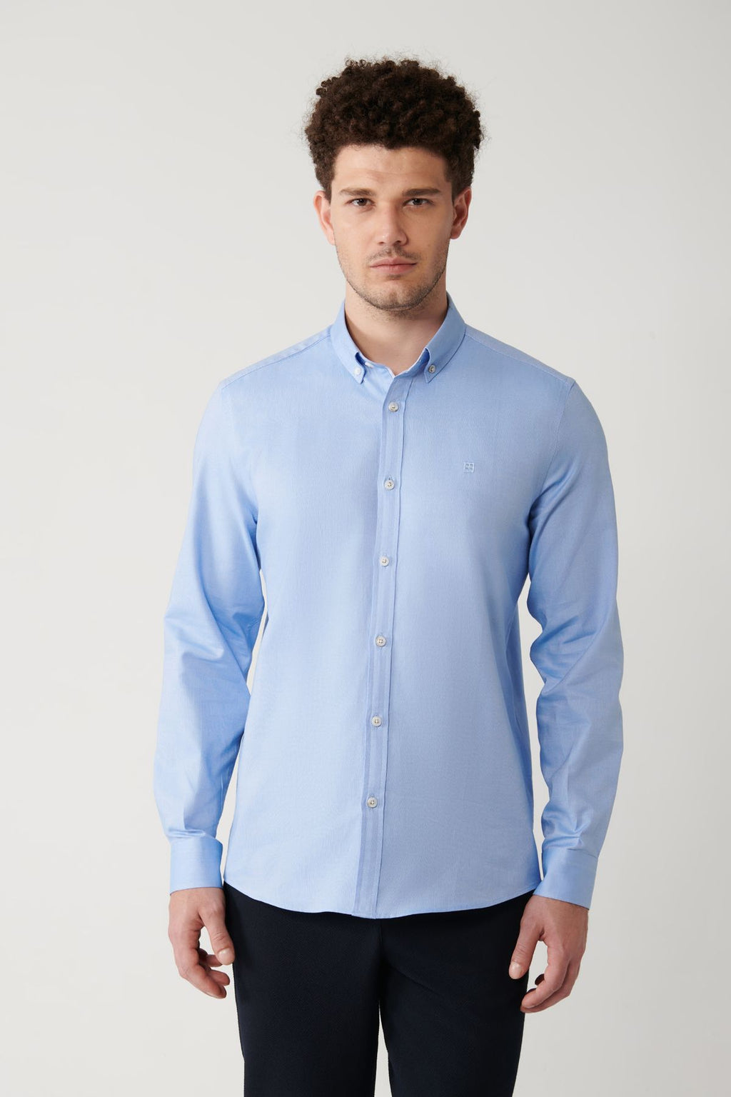 Men's blue button collar 100 %cotton oxford shirt B002034
