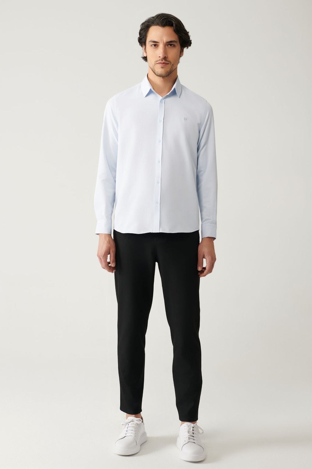 Men's blue easy ironable cotton mixed shirt A41y2237