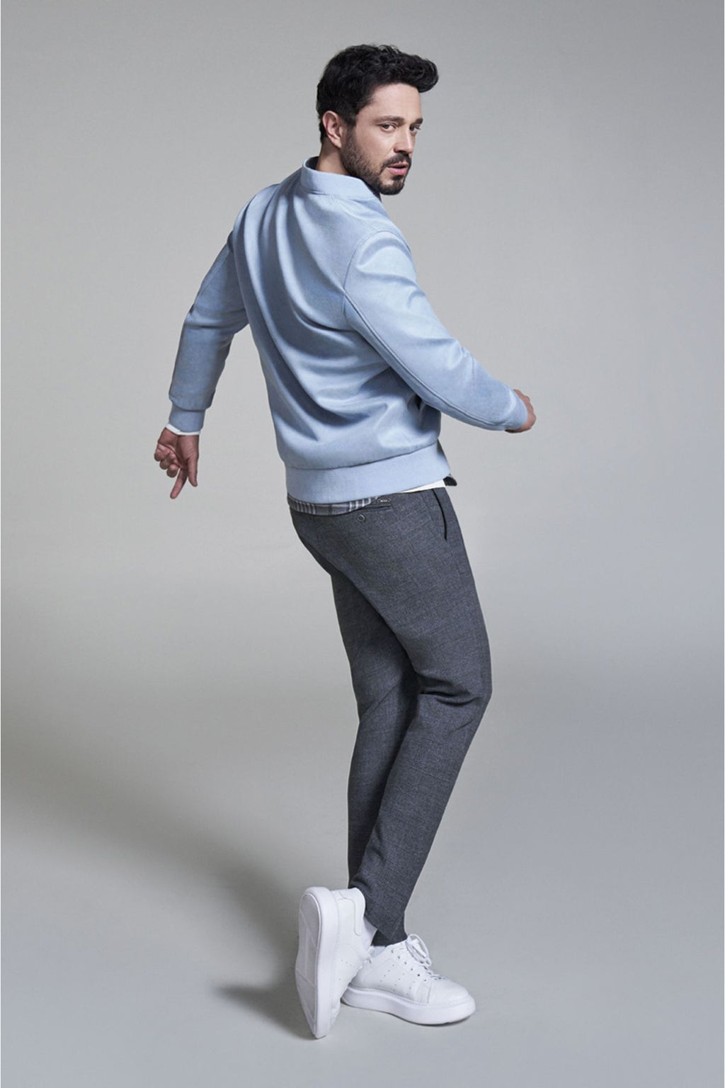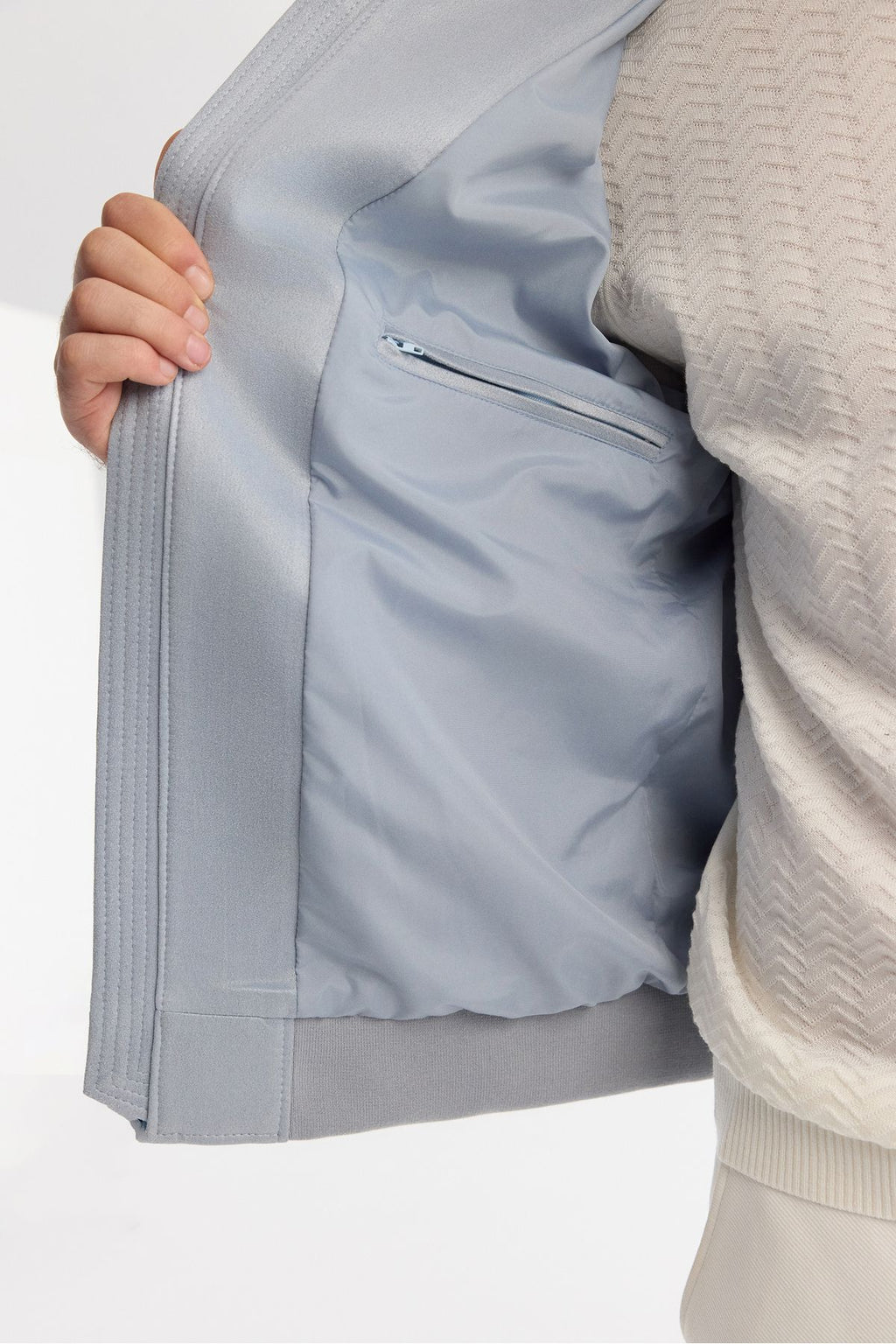 Men's Blue Zippered Suede -Look Bomber Ince Mont B006045