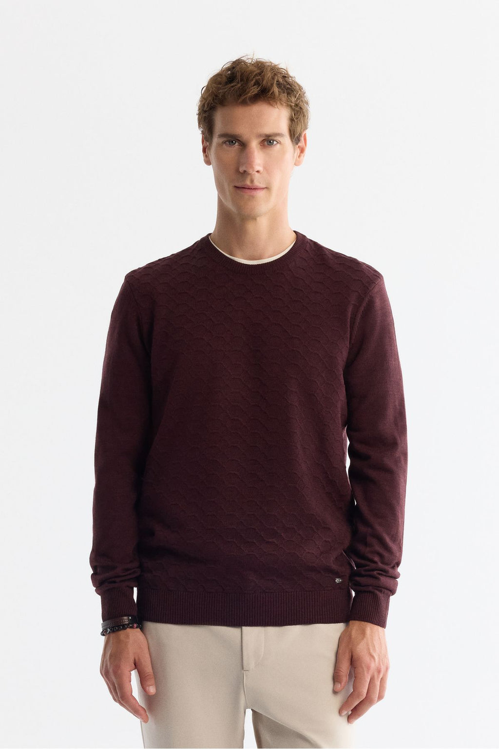 Men's Bordeaux Bicycle Neck textured knitwear sweater E005107
