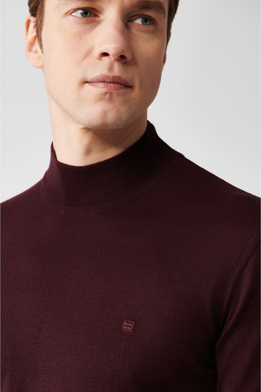 Men's Bordeaux Half Fisherman Neck Wool Mixed Knitwear Sweater B005015