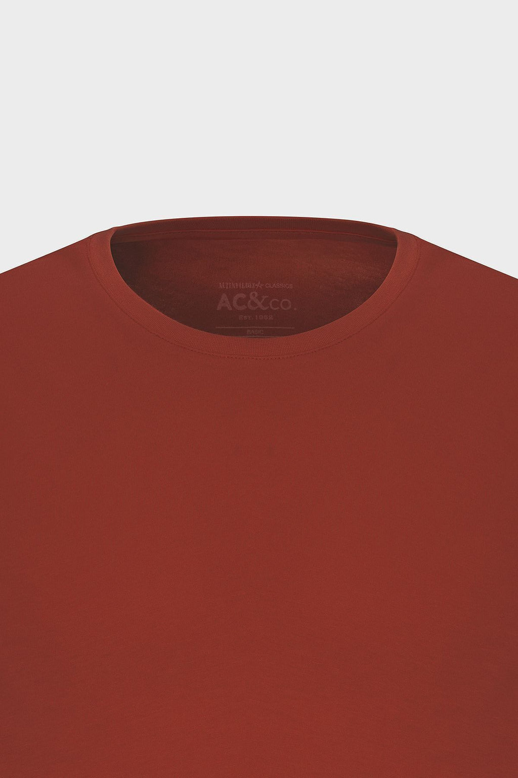 Men's burgundy 100 %cotton slim fit narrow cut bicycle collar Basic T -shirt