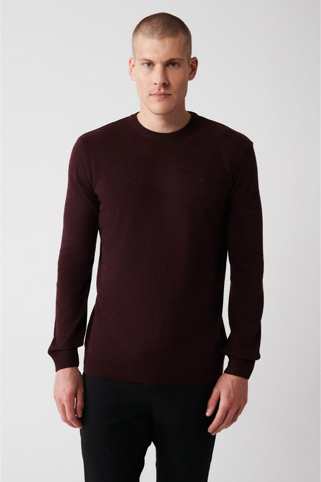 Men's burgundy bike collar hair -free knitwear sweater E005000