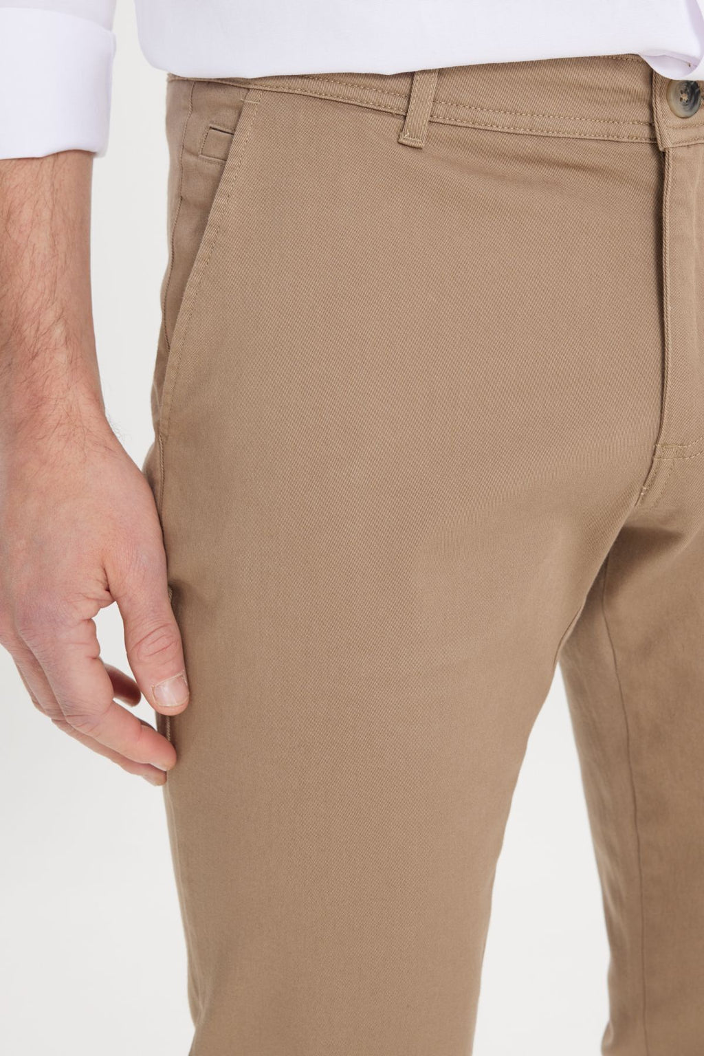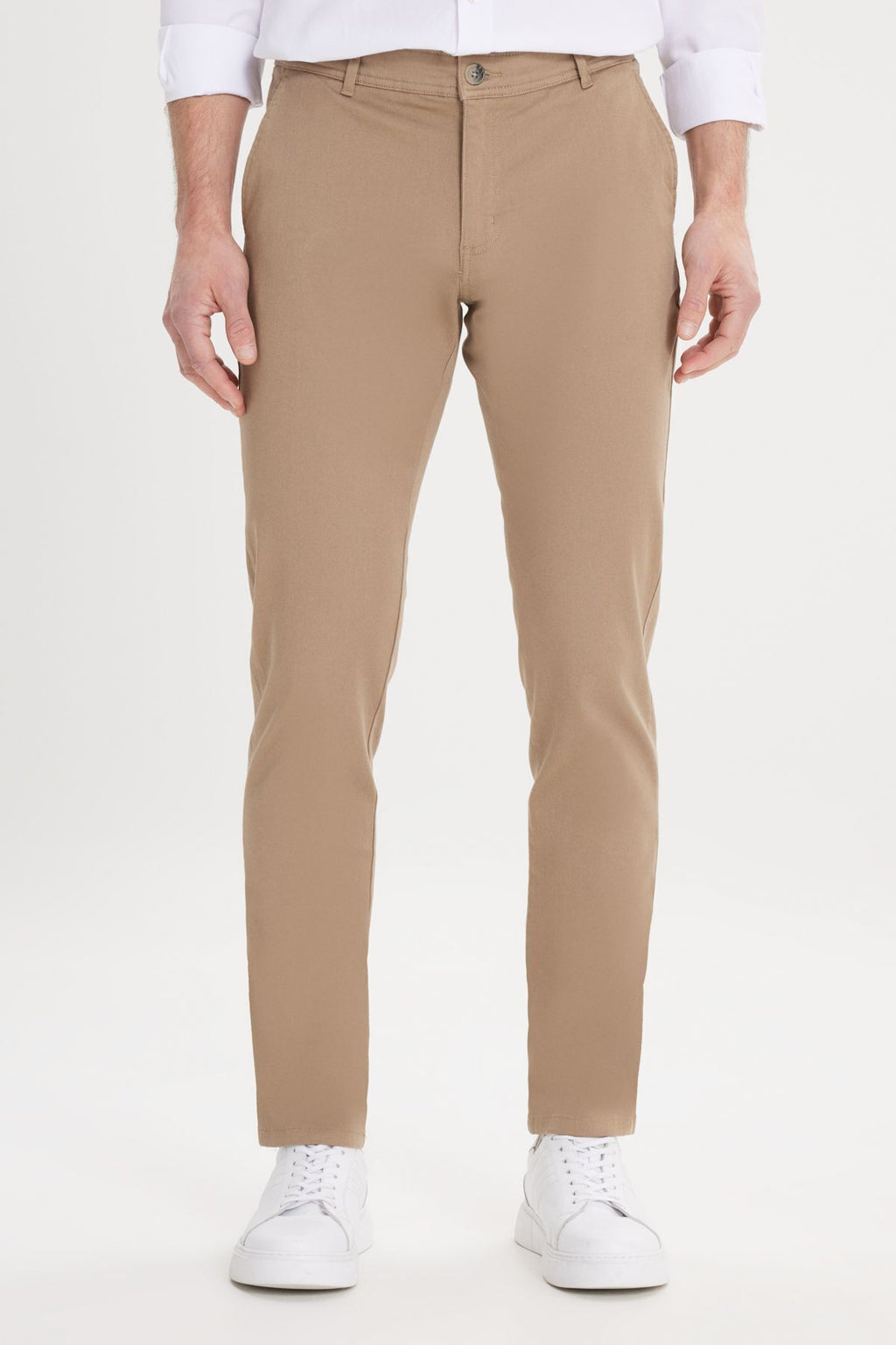 Men's Camel Kanvas Slim Fit Narrow Cut Side Pocket Flexible Chino Pants
