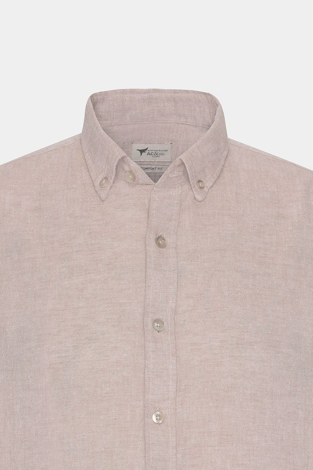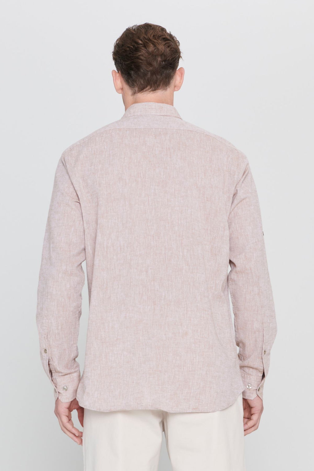 Men's Camel Linen Comfort Fit Casual Cutting Buttoned Neck Casual Shirt