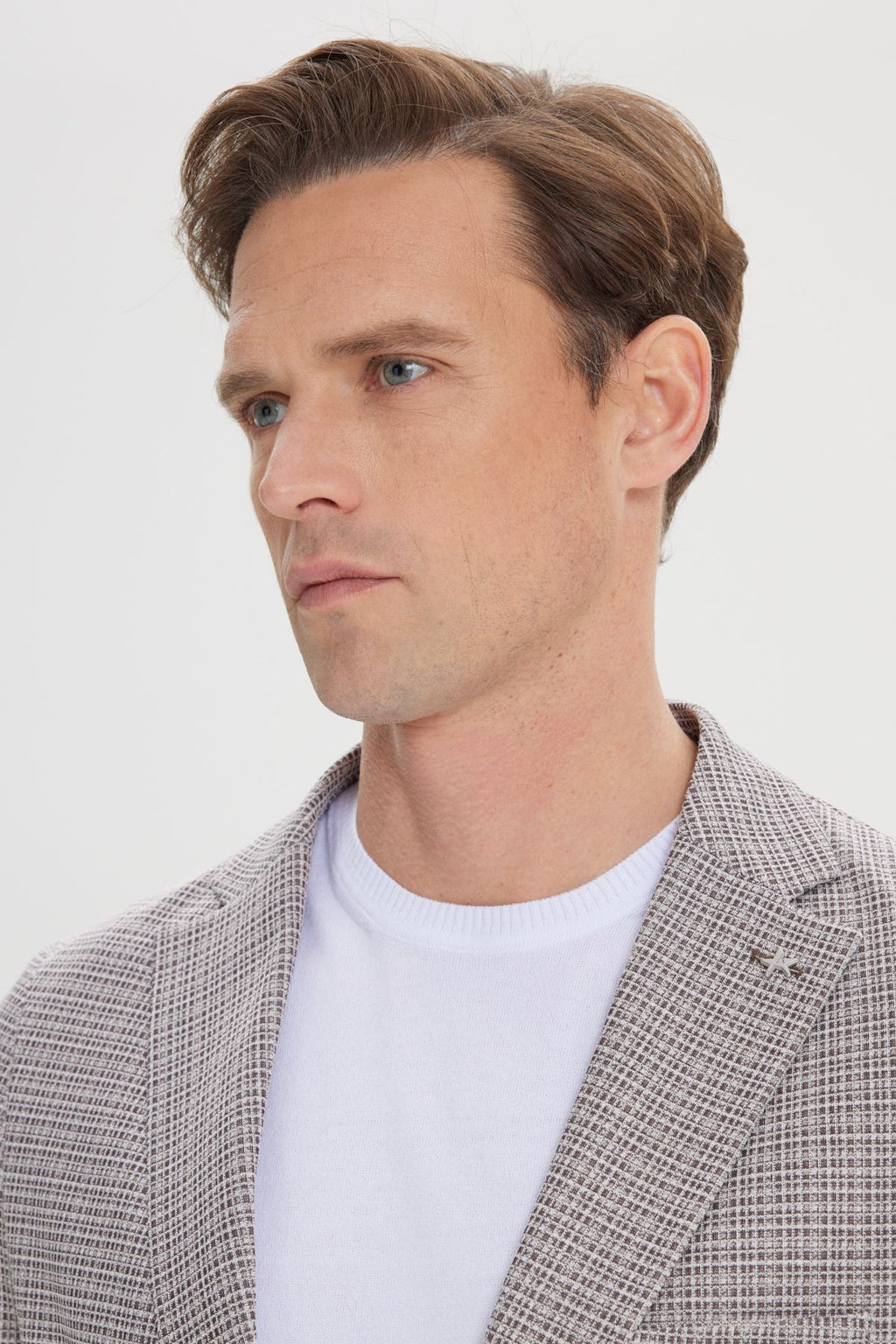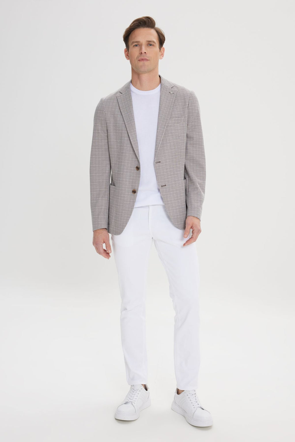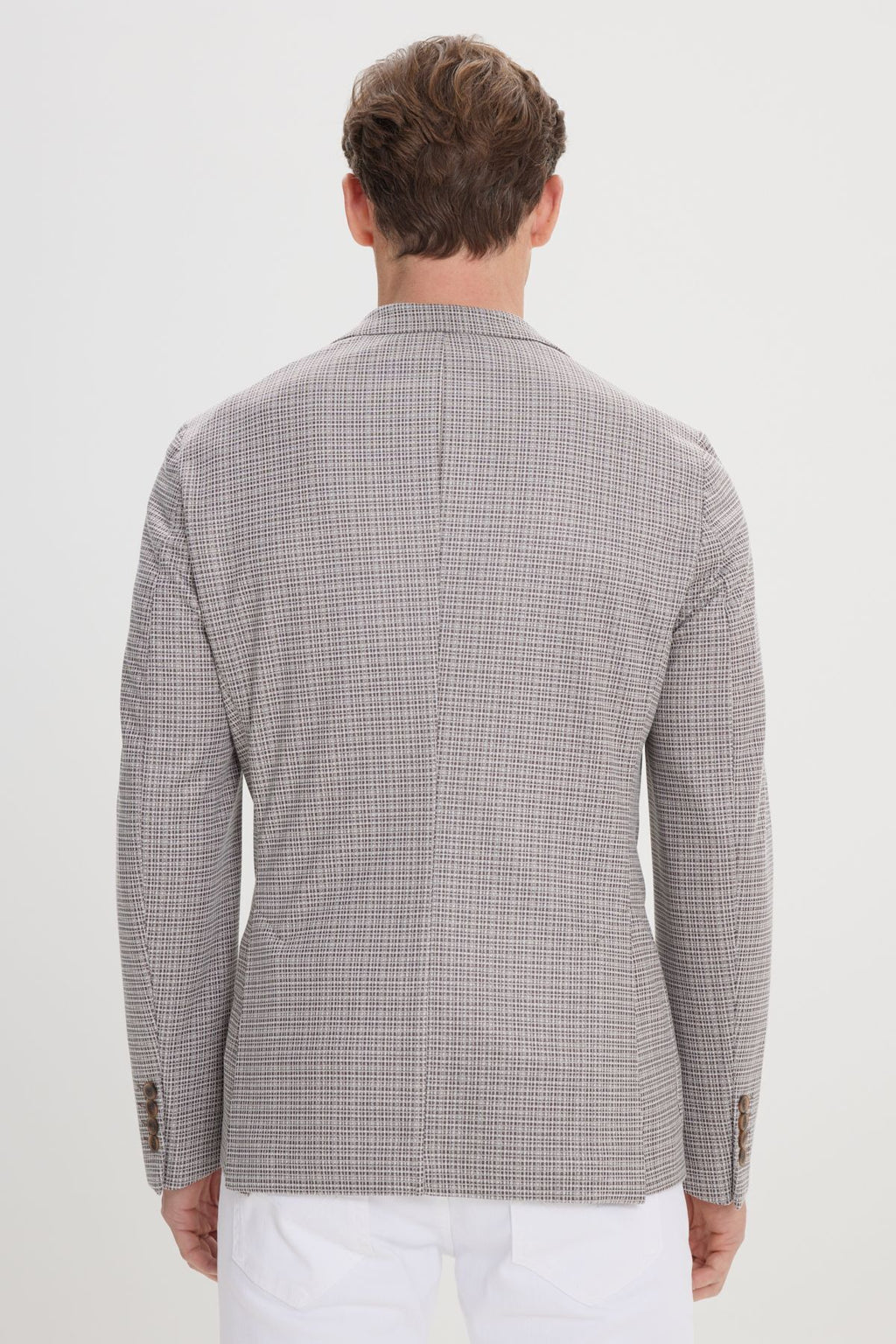 Men's coffee-bej slim fit narrow cutting mono collar pattern blazer jacket