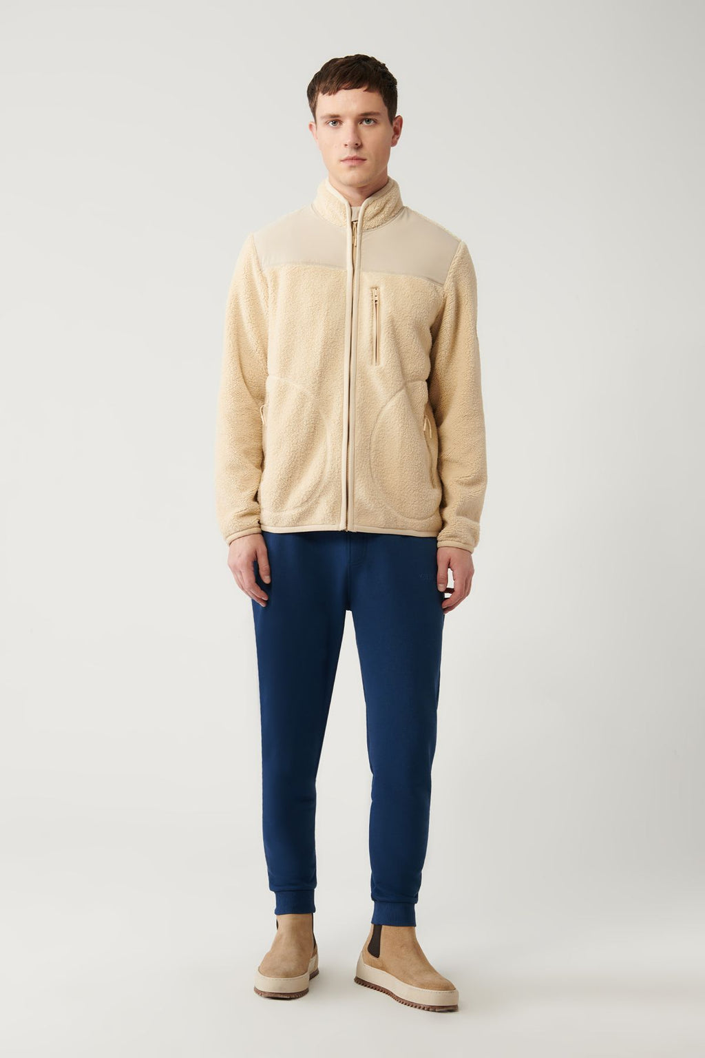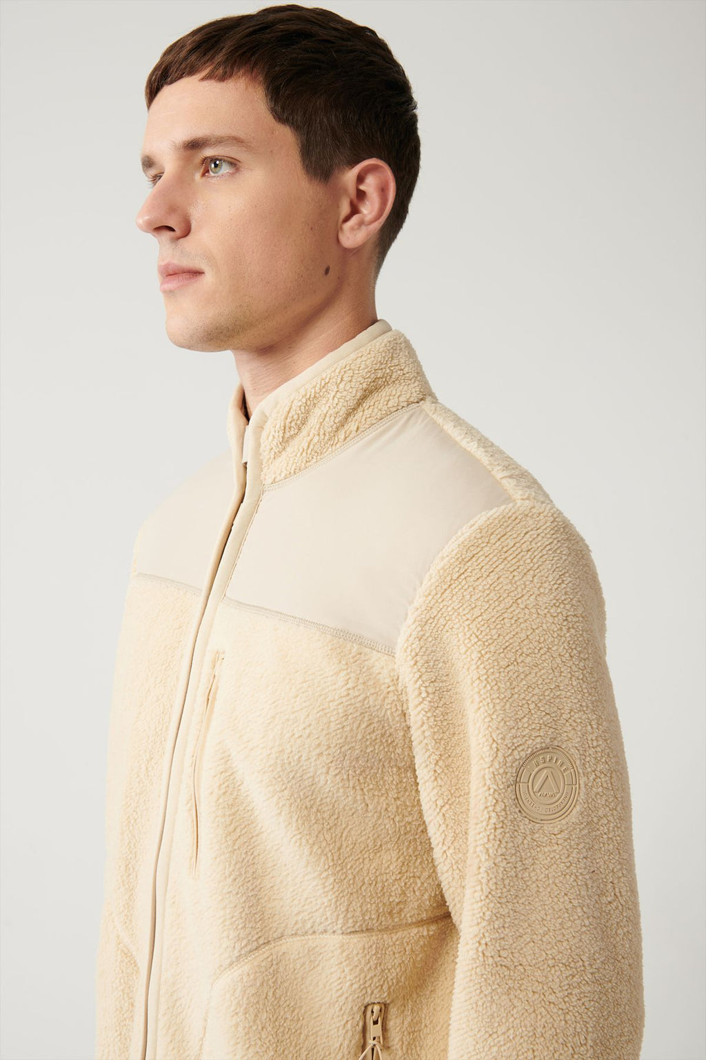 Men's cream upright collar full zipper plush sweatshirt a32y1381