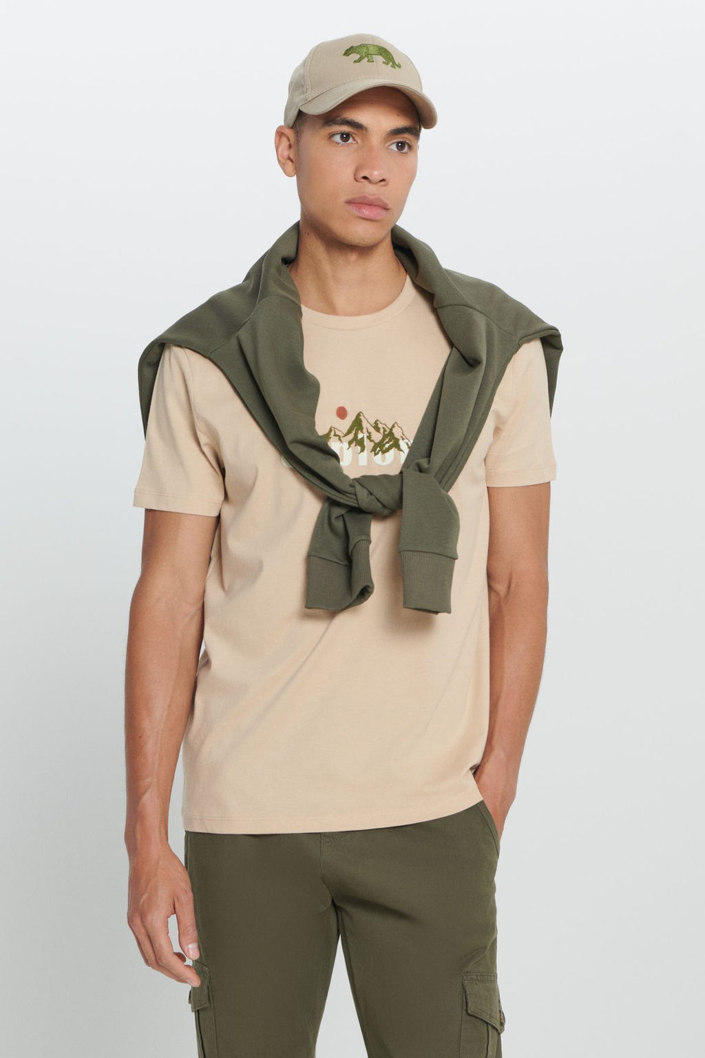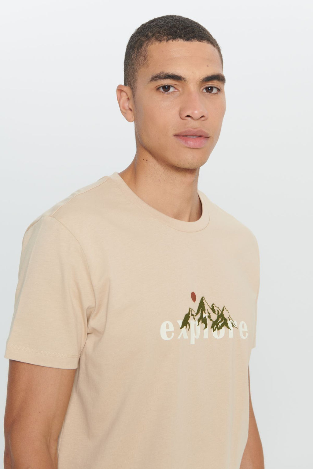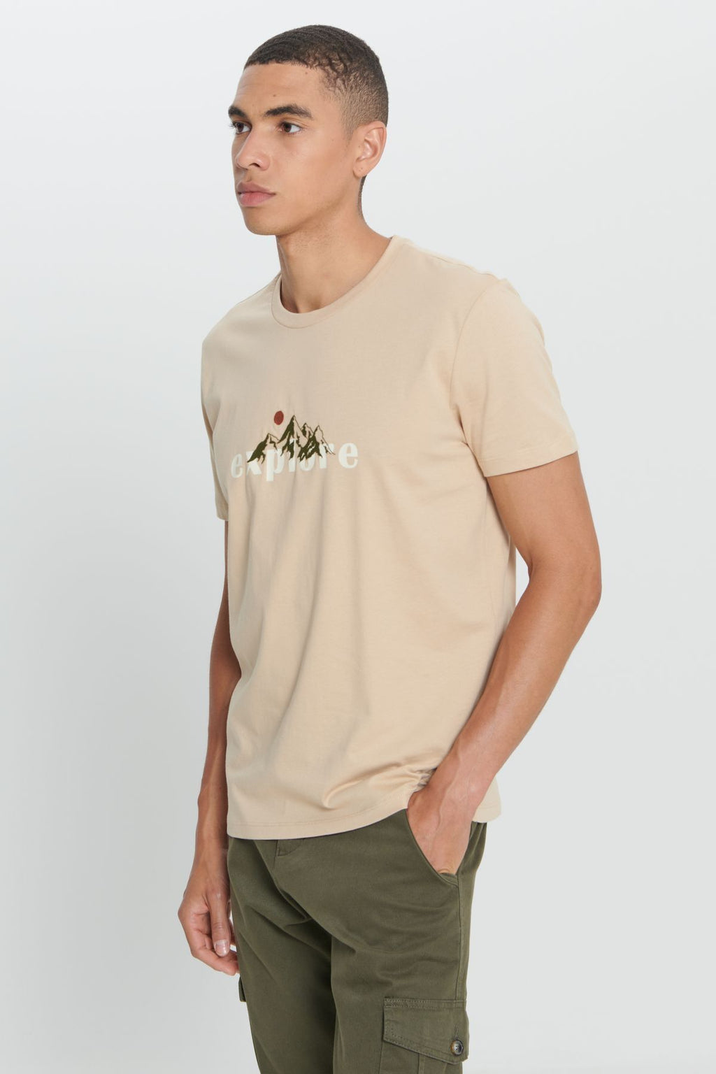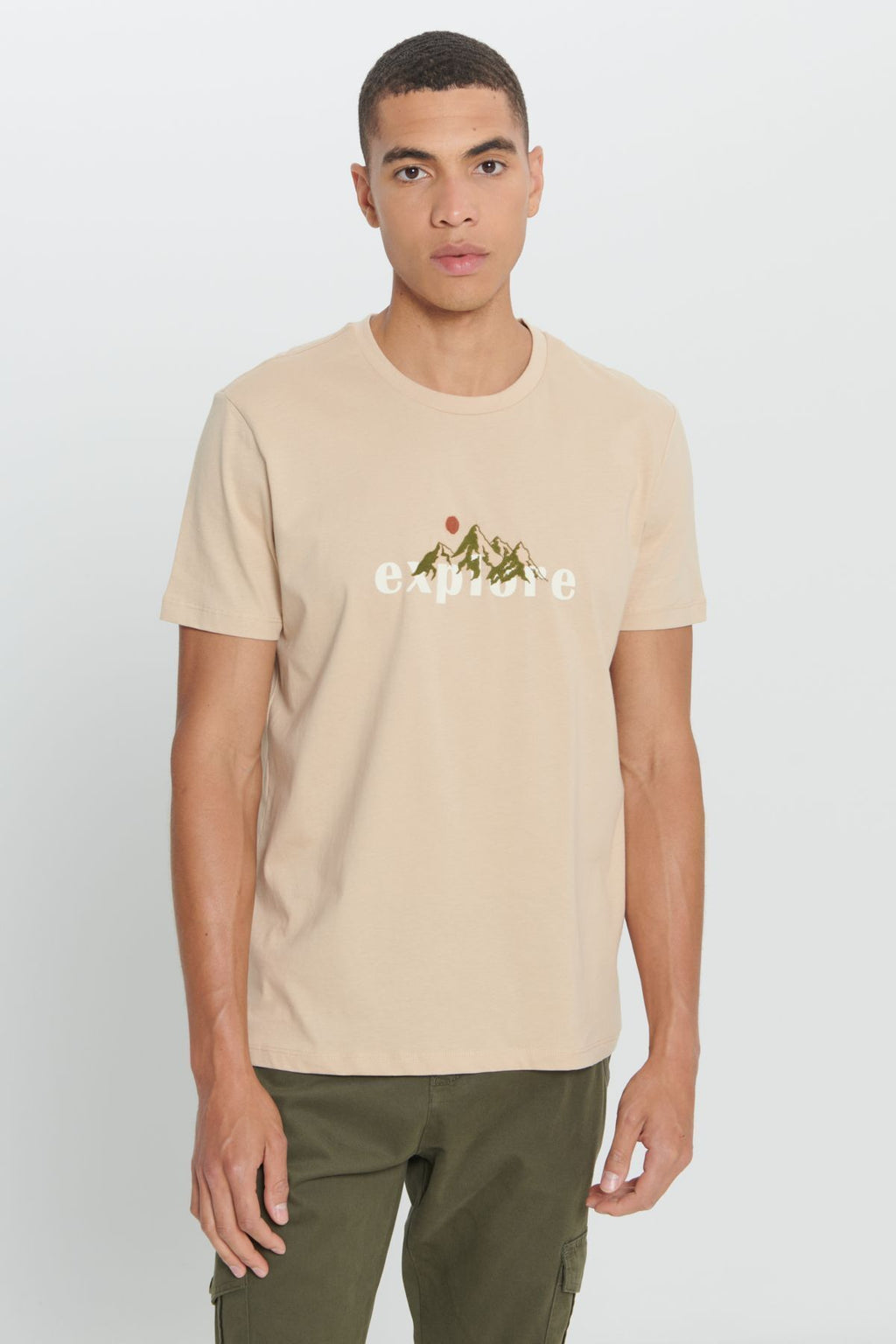 Men's Dark Beige Standard Fit Normal Cutting 100 %Cotton Printed Bike Bike T -shirt