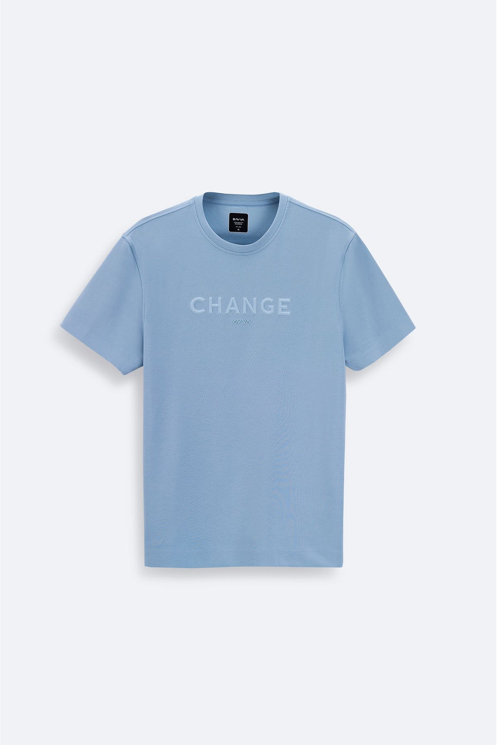Men's Dark Blue Soft Touch Bicycle Collar Printed T-shirt A41y133333