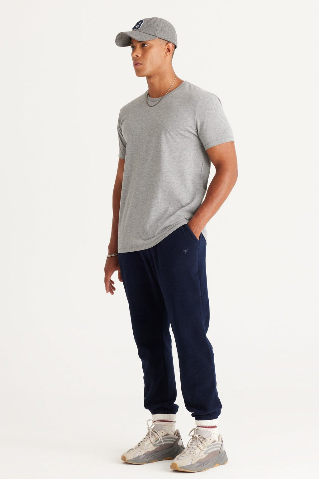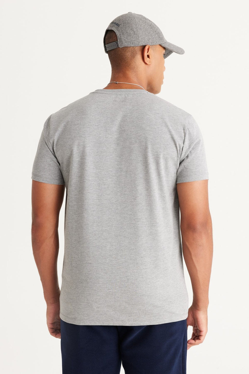 Men's dark gray cotton slim fit narrow cut bike bike collar basic t -shirt