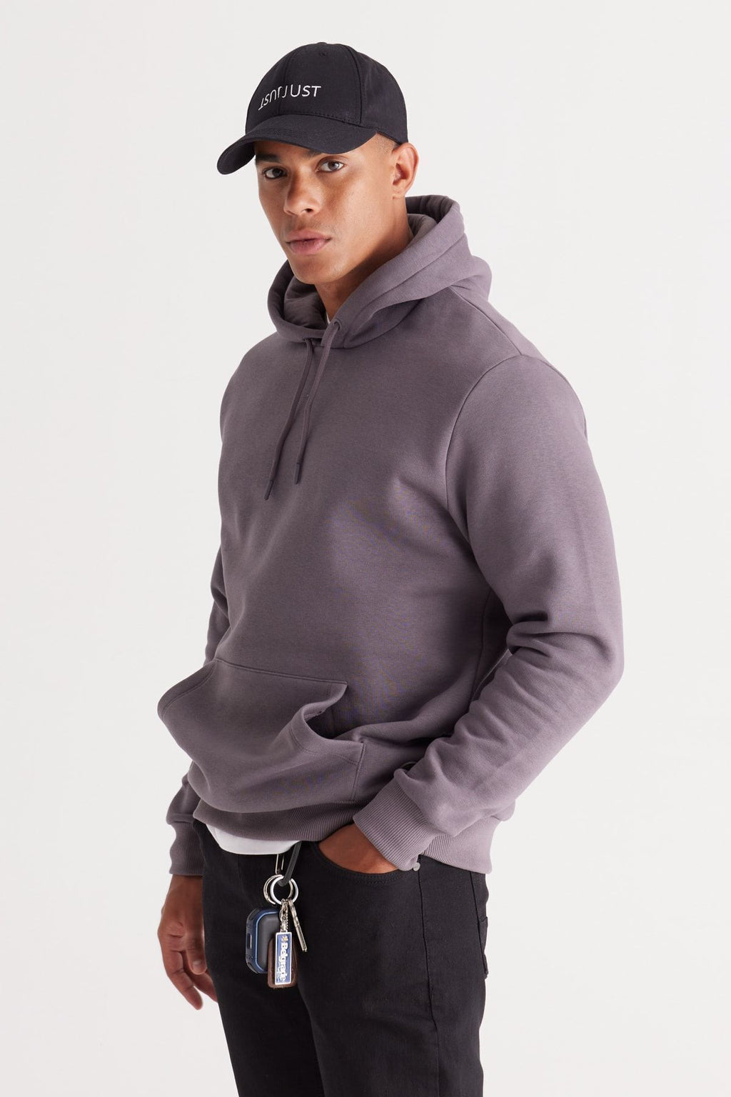 Men's Dark Gray Standard Fit Içi Polar 3 IP hooded kangaroo pocket cotton sweatshirt