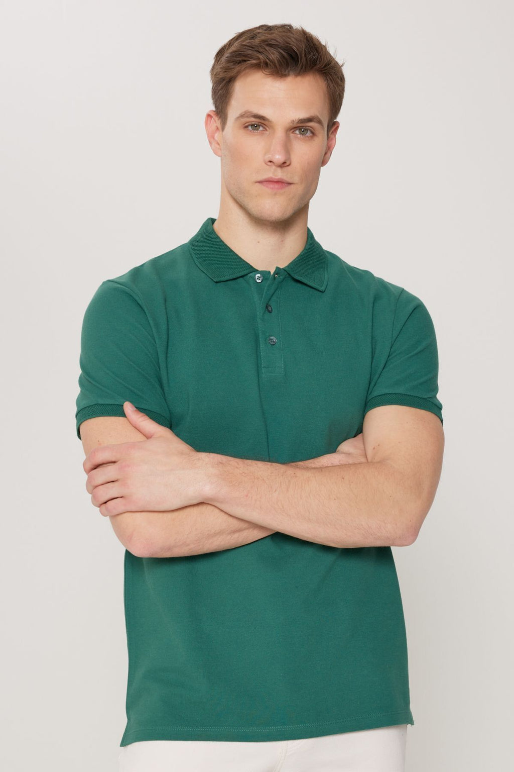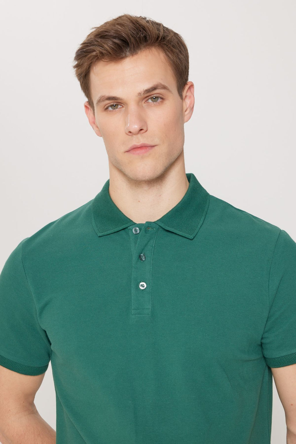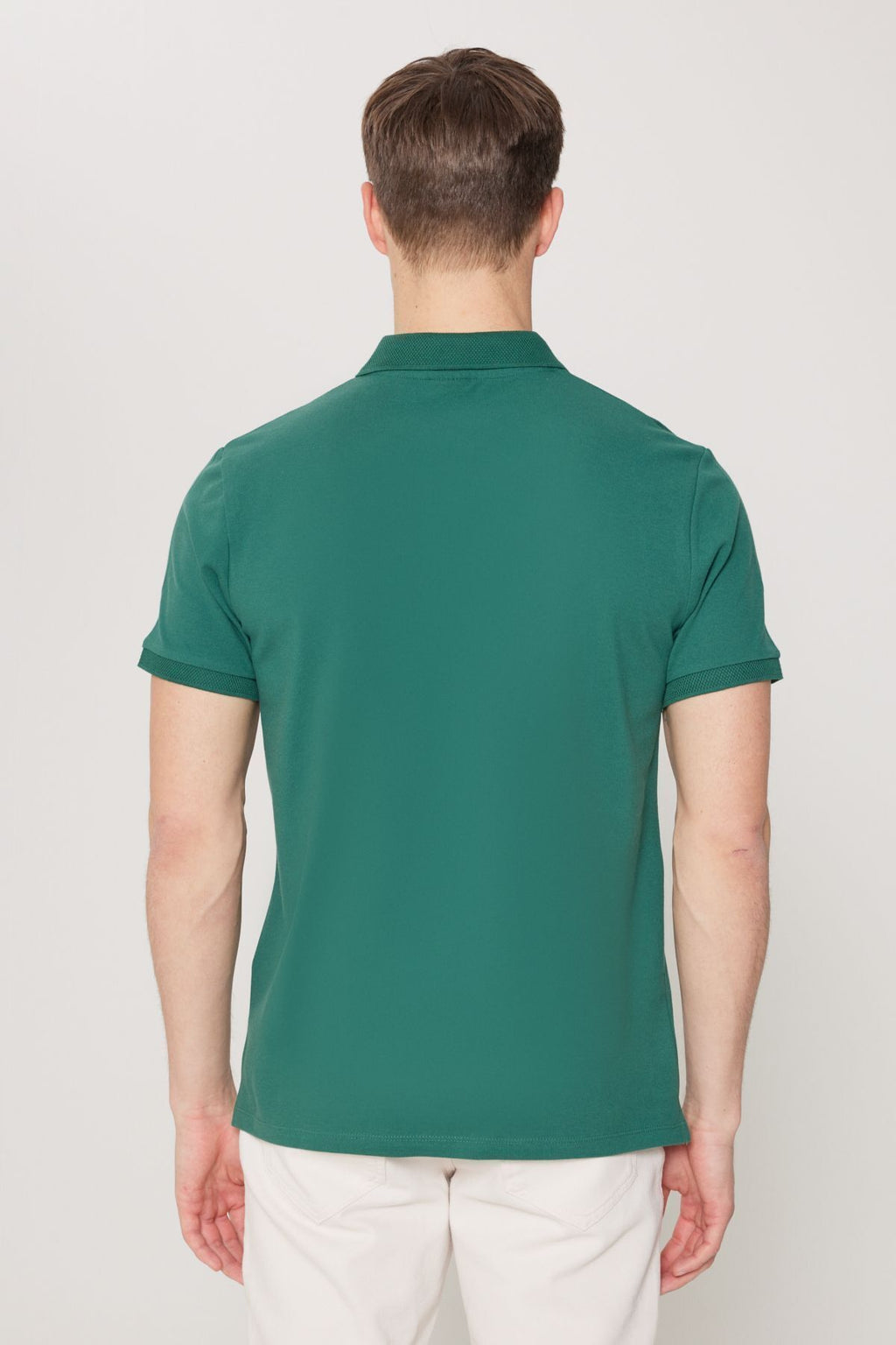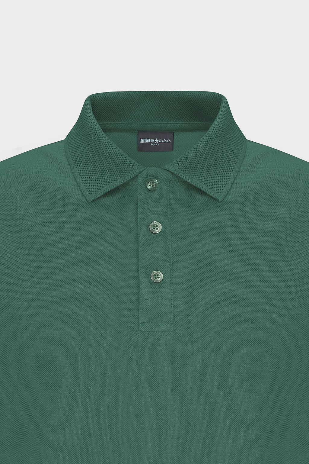 Men's Dark Green 100 %Cotton Curlled Pike Polo Yaka Slim Fit Narrow Cut T -shirt