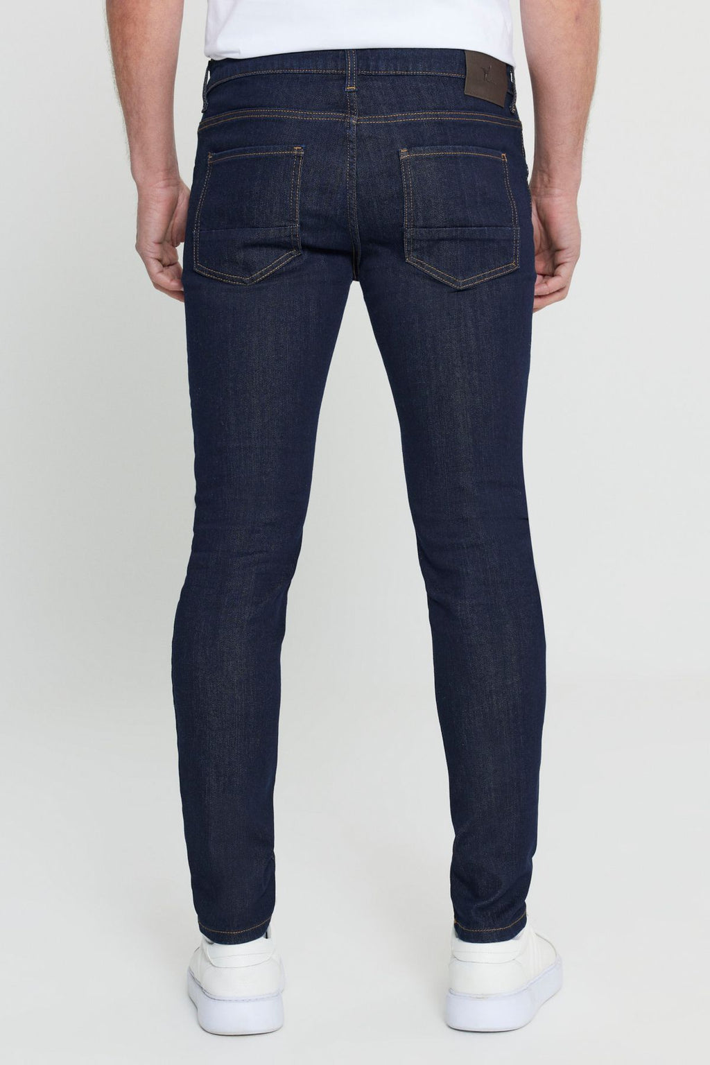 Men's dark navy blue extra slim fit narrow cut cotton flexible rıis jean jeans denim
