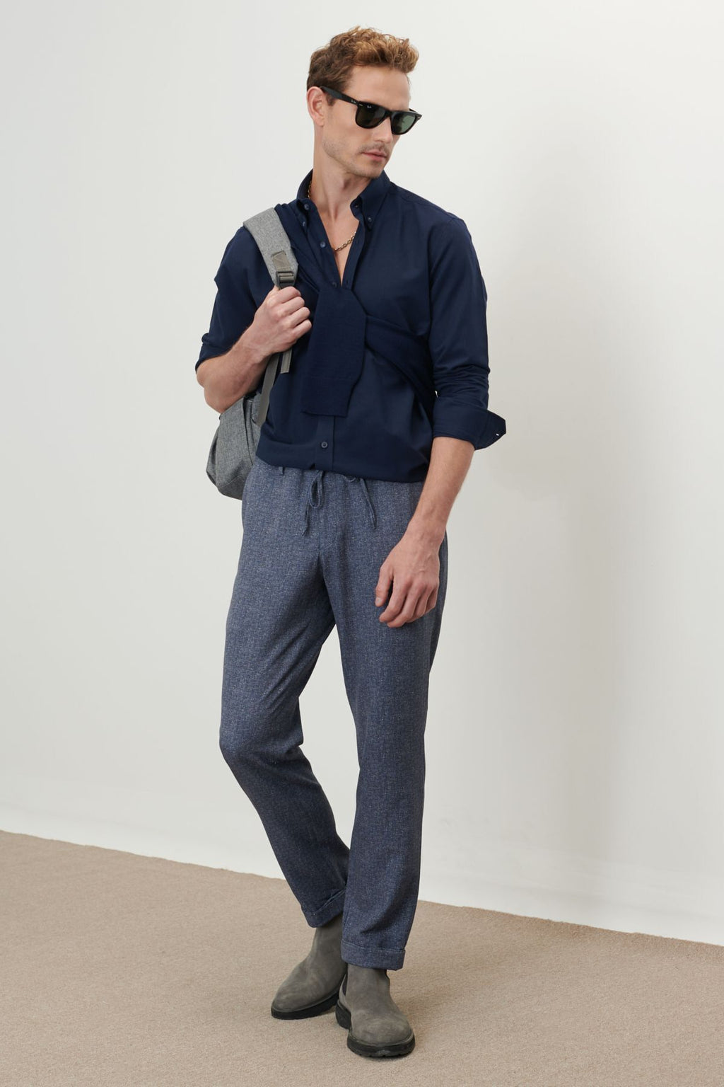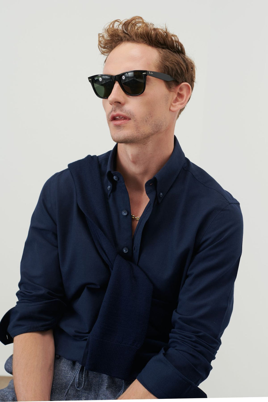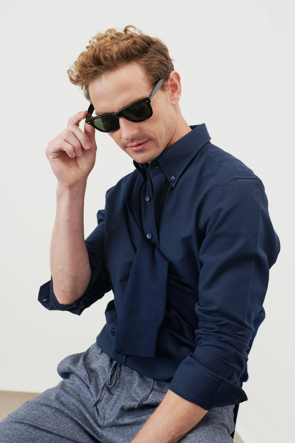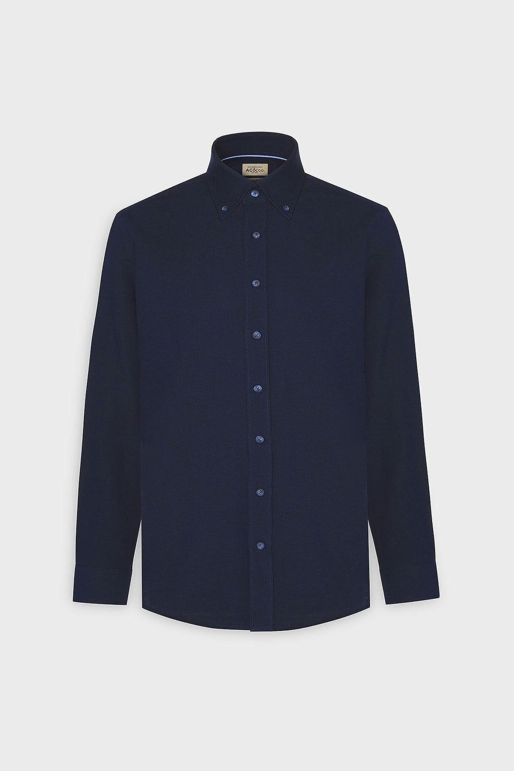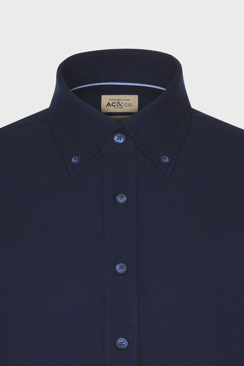 Men's dark navy blue slim fit narrow cut buttoned collar cotton oxford shirt