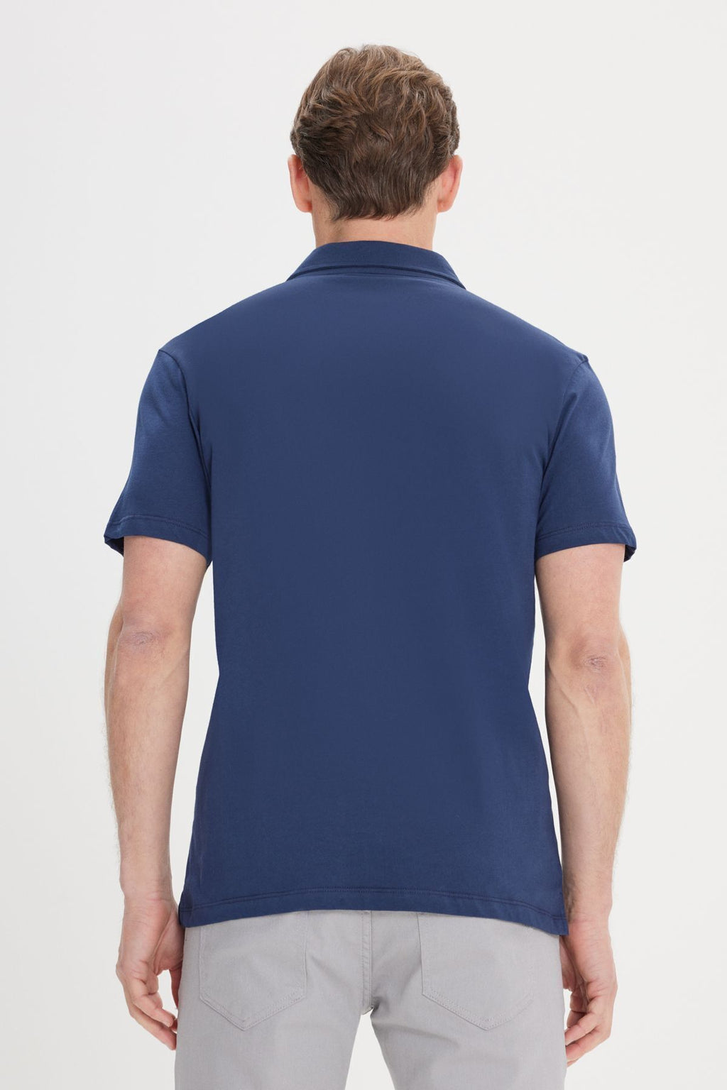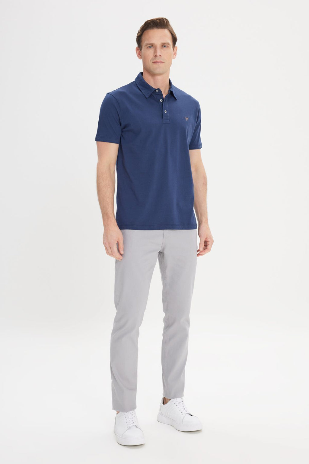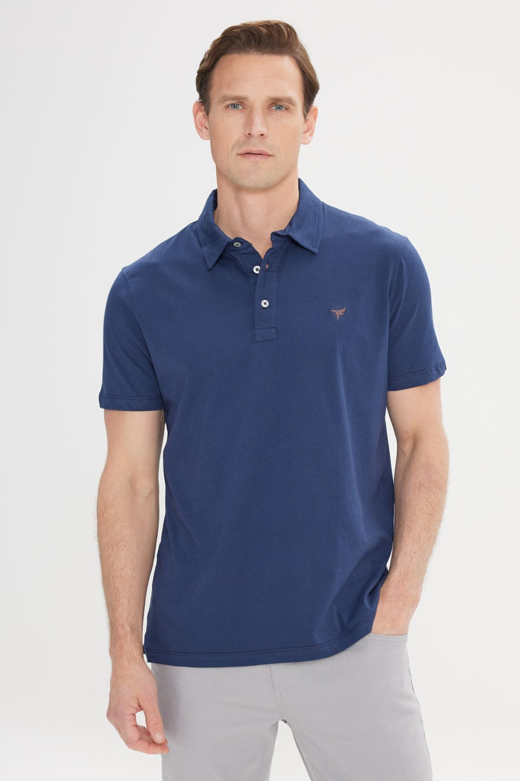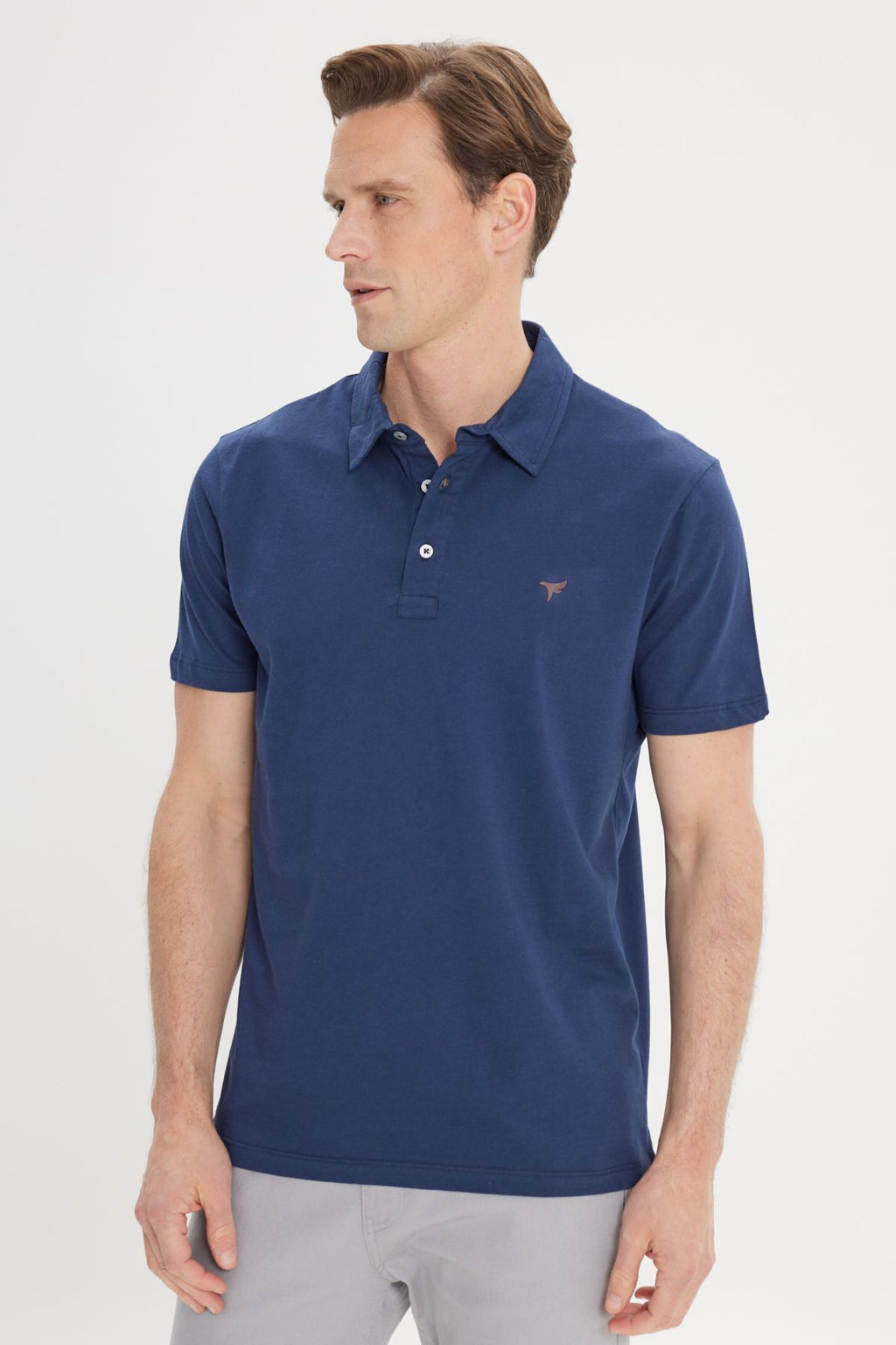 Men's Dark Navy Blue Standard Fit Normal Cutting 100 %Cotton Logo Detailed Polo Yaka T -shirt