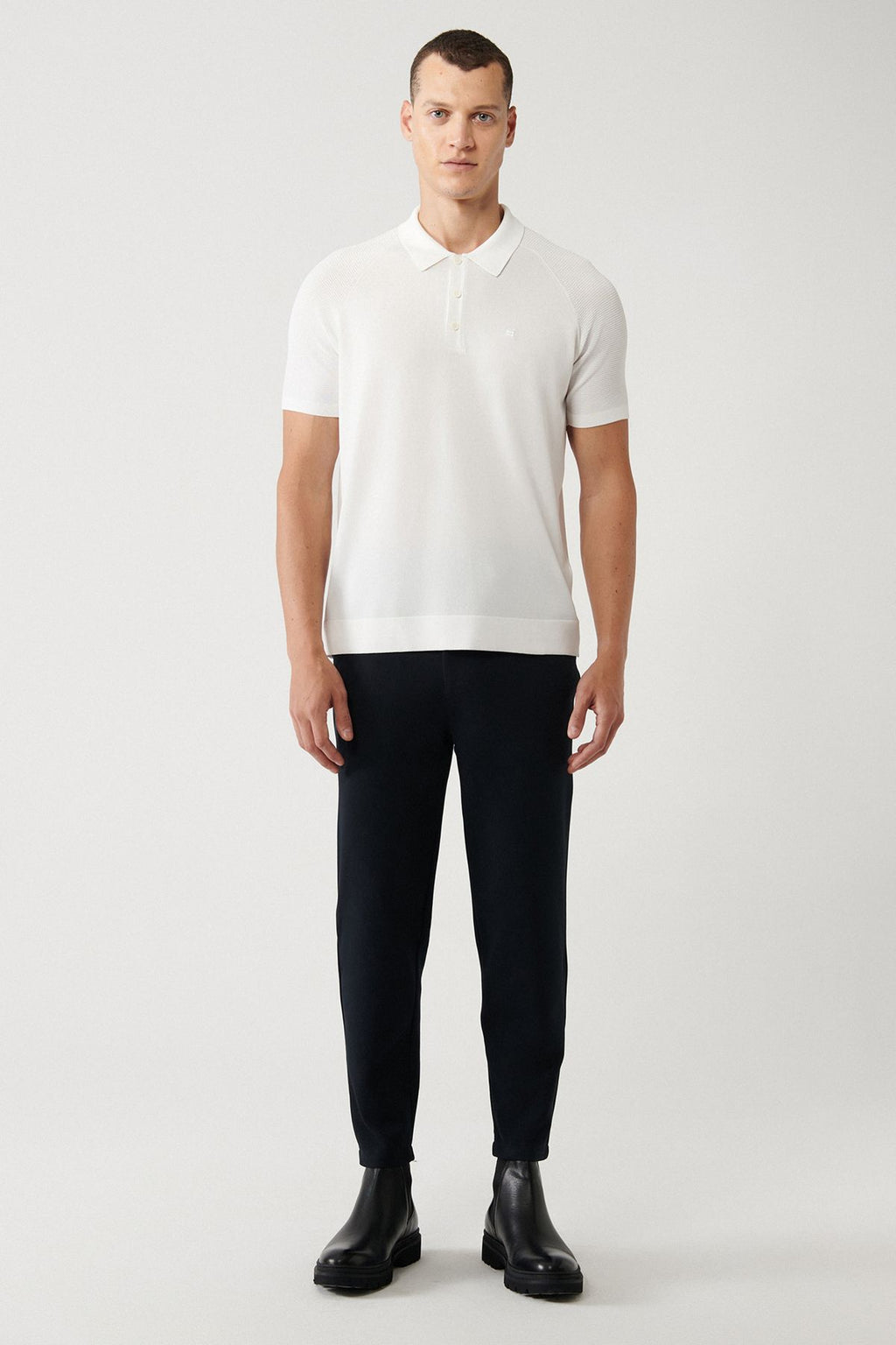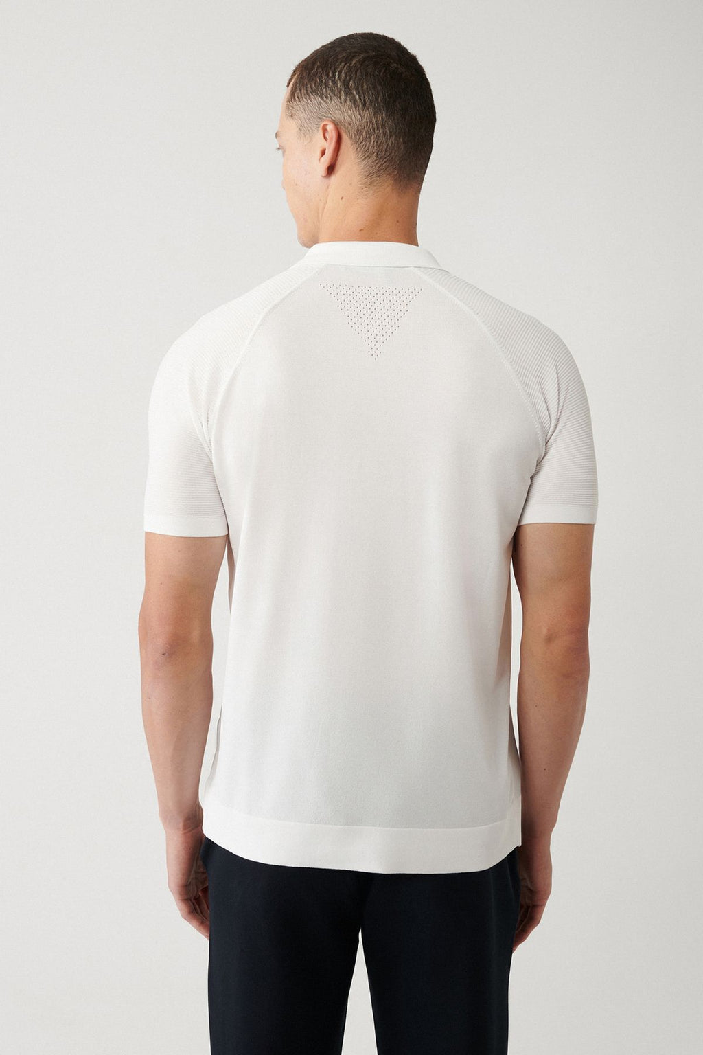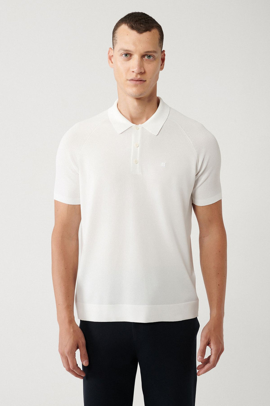 Men's ecru arms knitting detailed rayon knitwear t-shirt A32y5018
