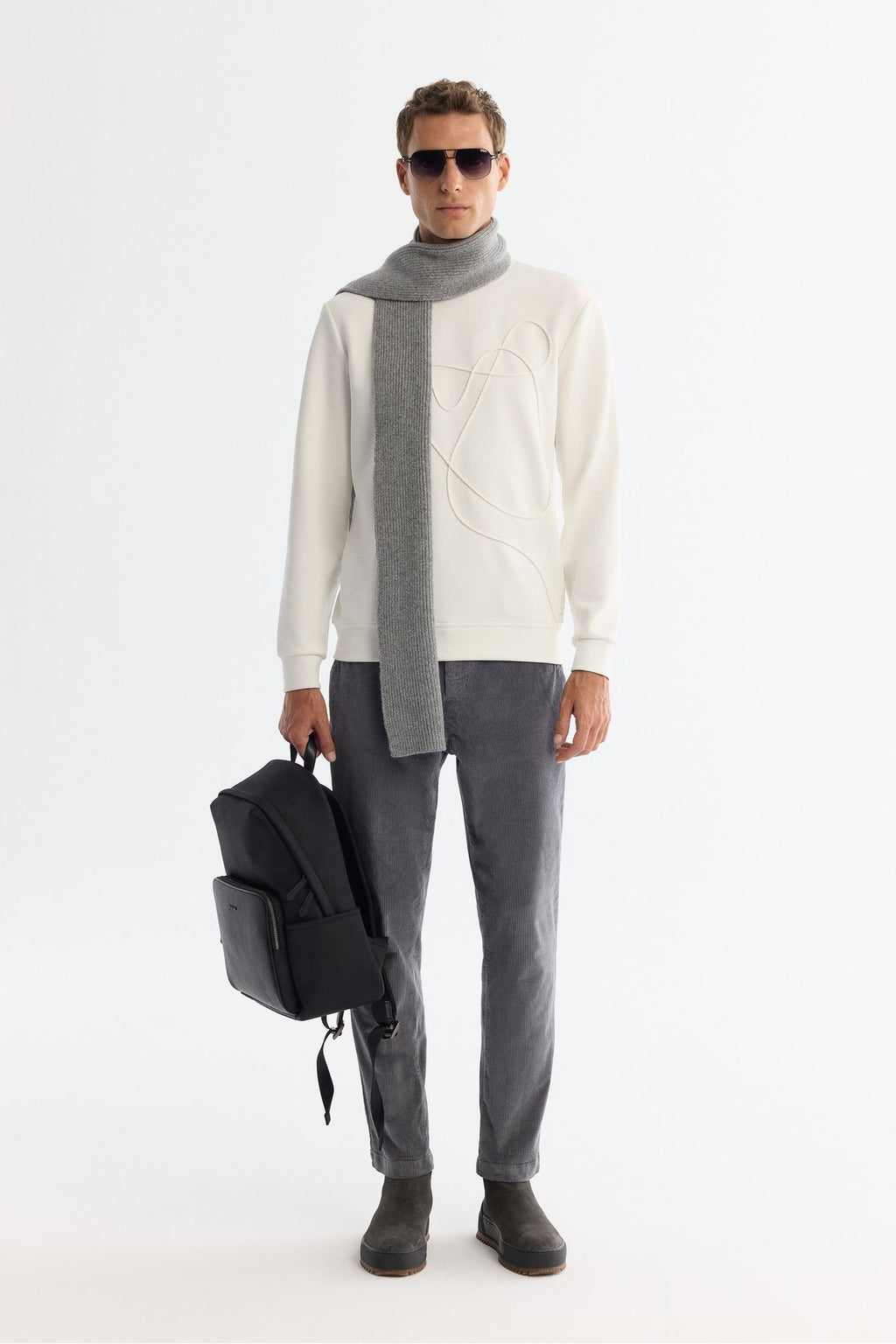 Men's Ecru Bicycle collar Cotton Embroidery Sweatshirt A42y1247