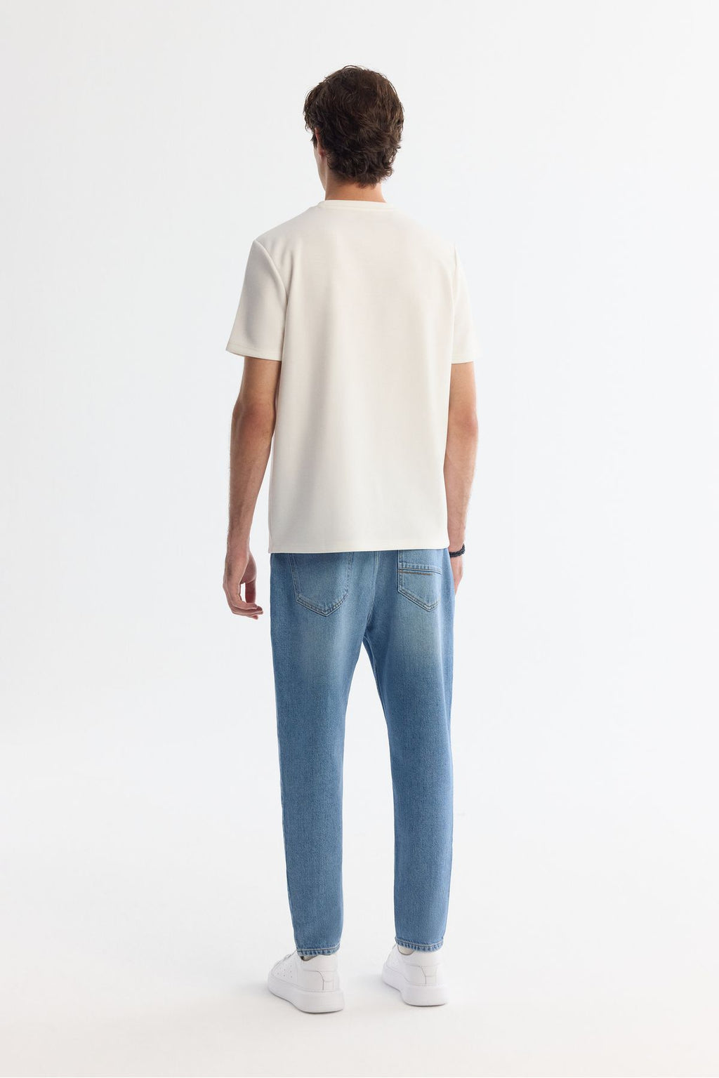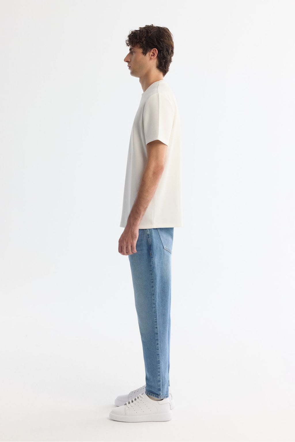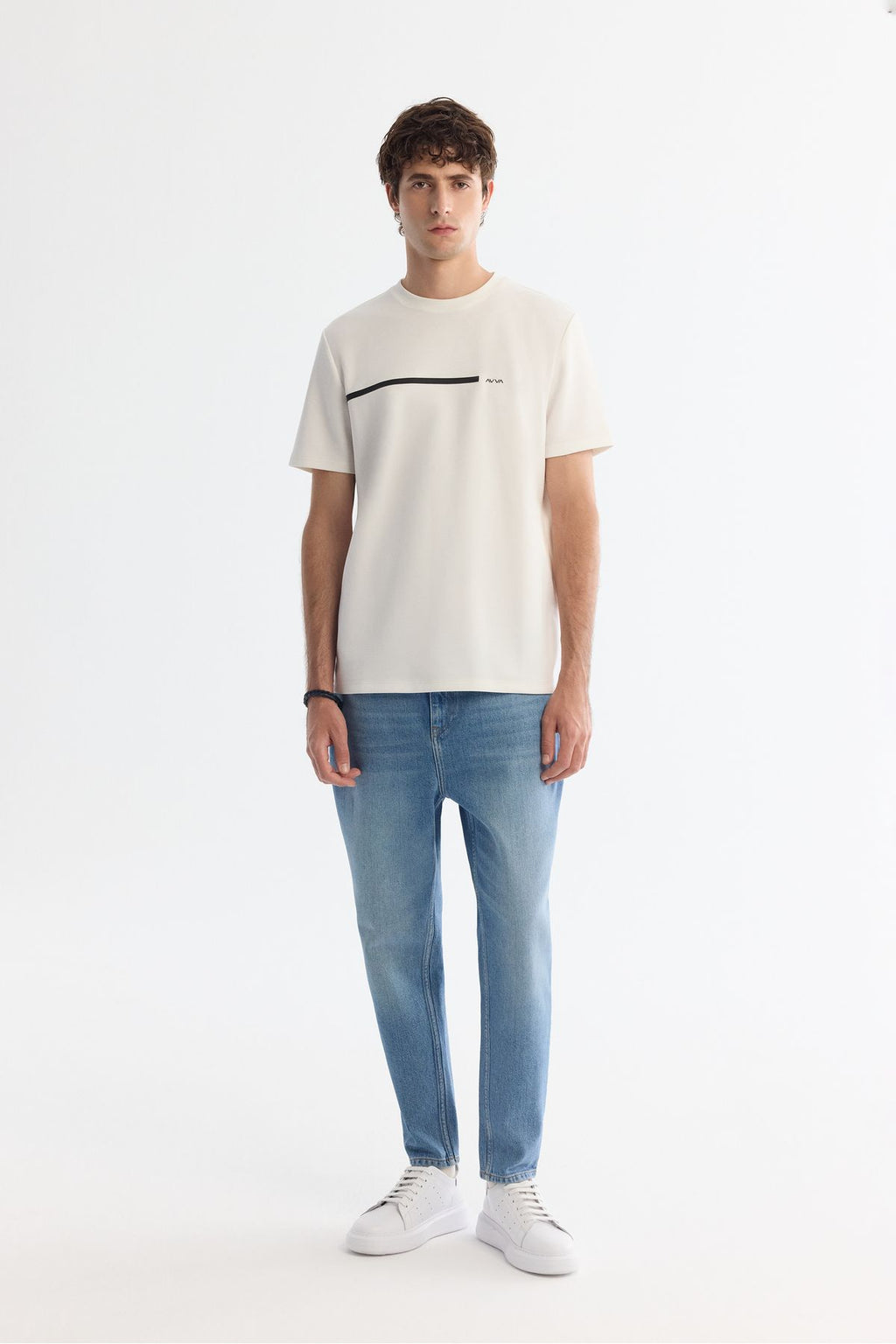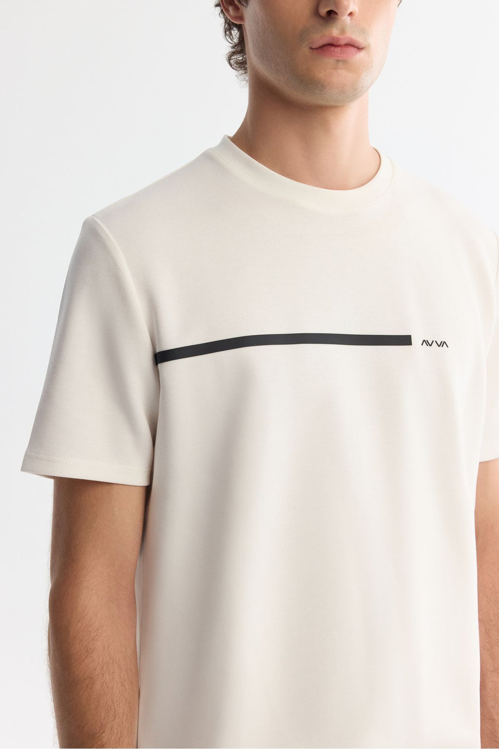Men's Ecru Bicycle Collar Elastan Interlok T-Shirt A42Y1003