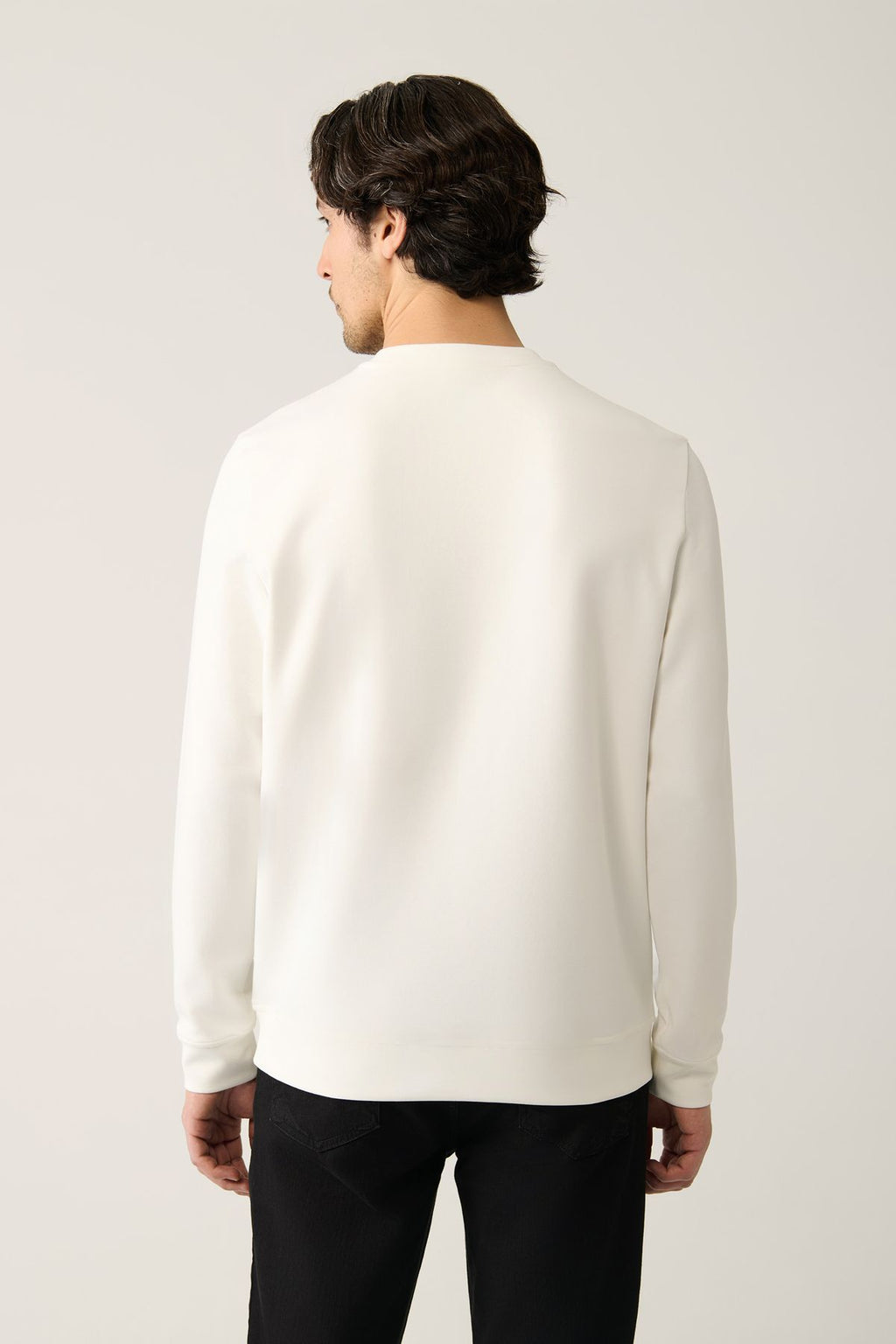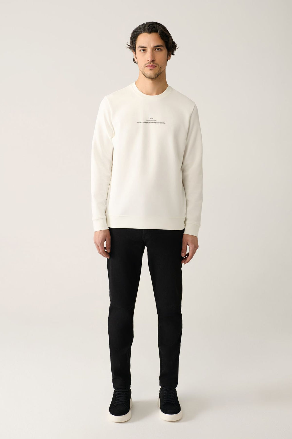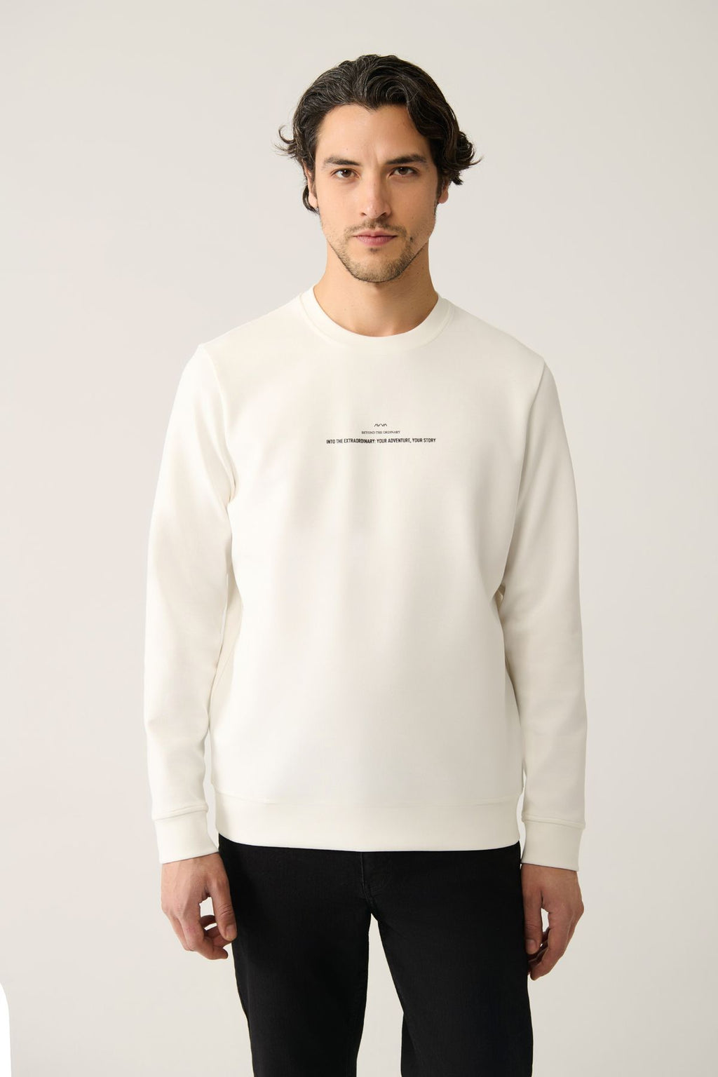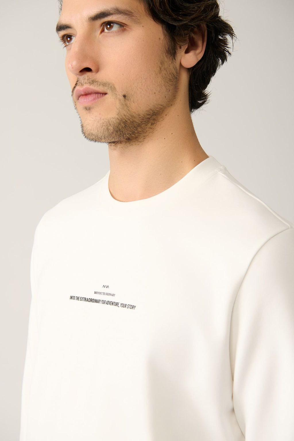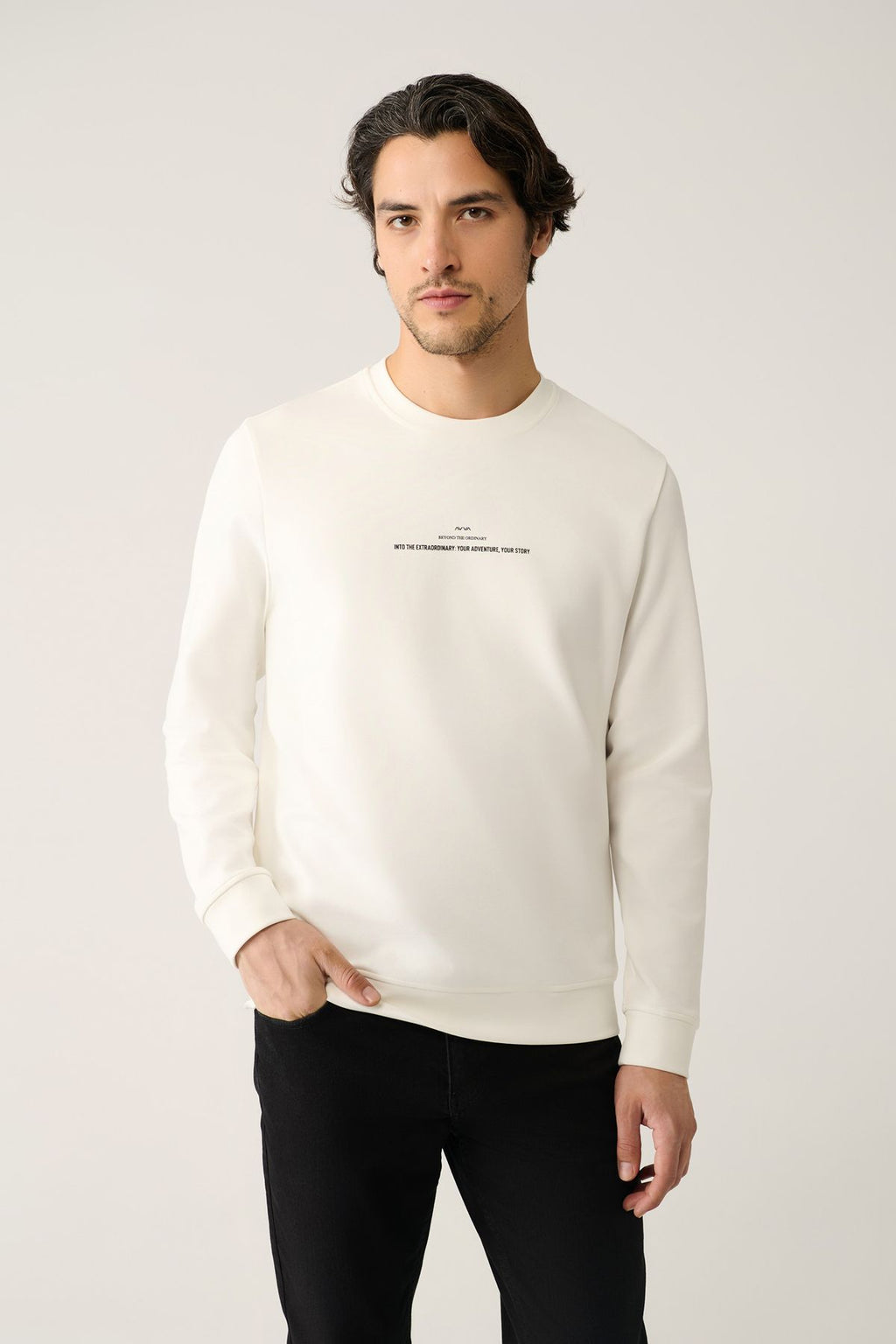 Men's Ecru Bicycle Collar Interlok Printed Sweatshirt A41y1246