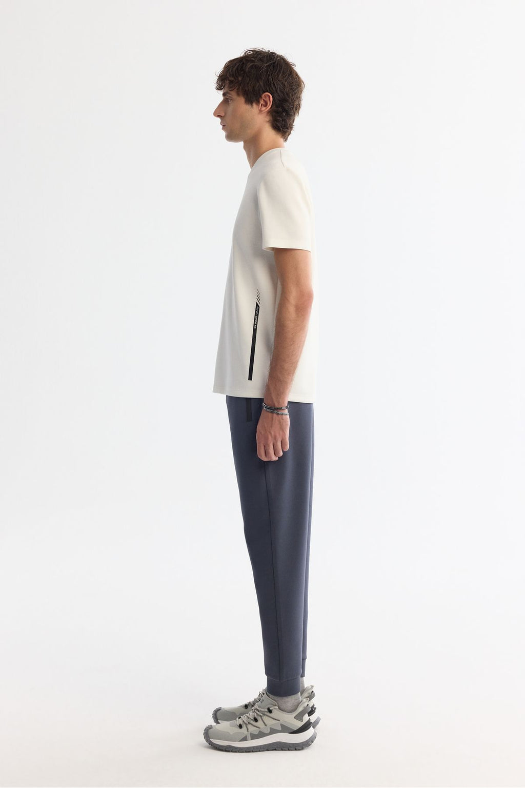 Men's Ecru Bicycle Collar Printed Elastan T-Shirt A42y1017
