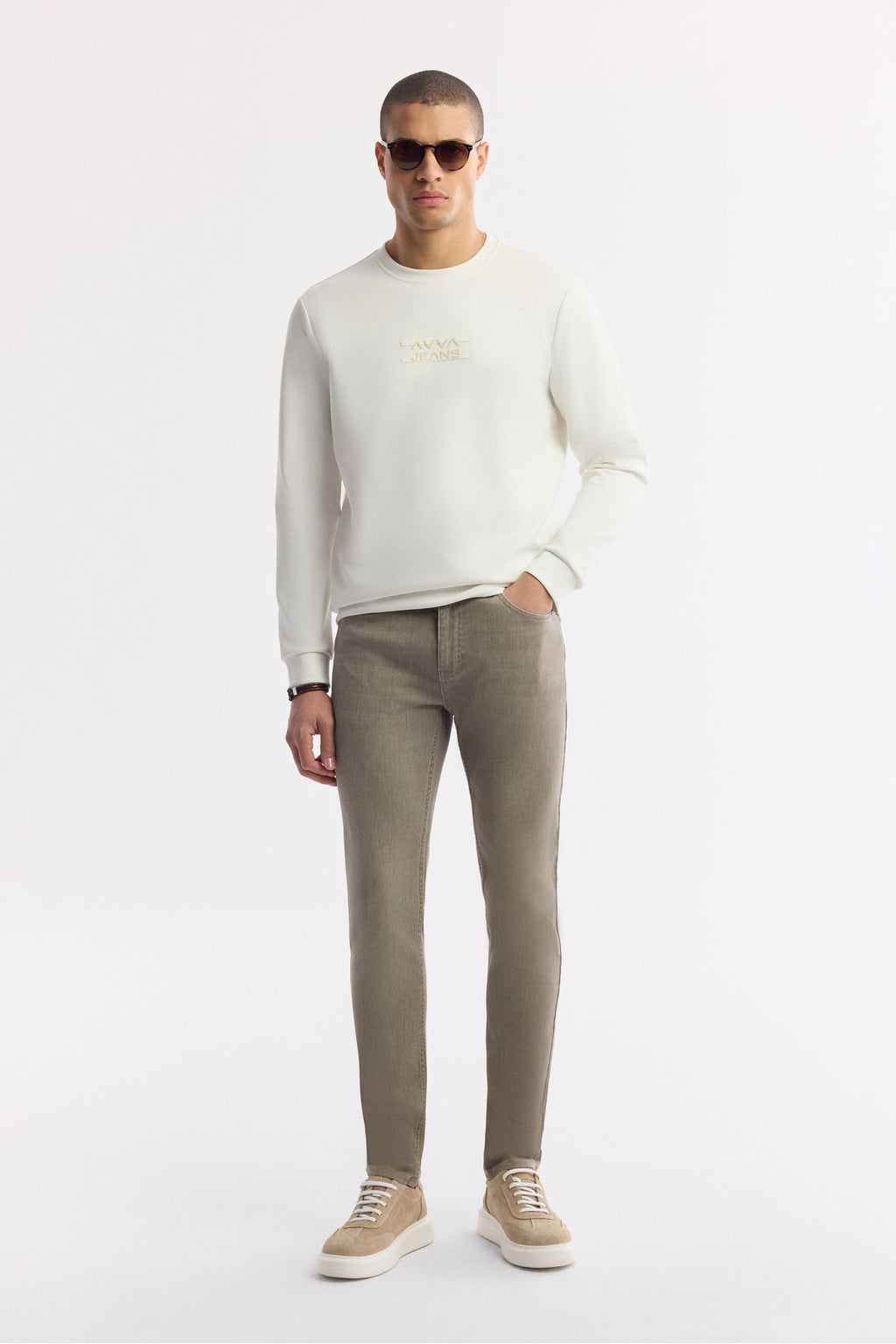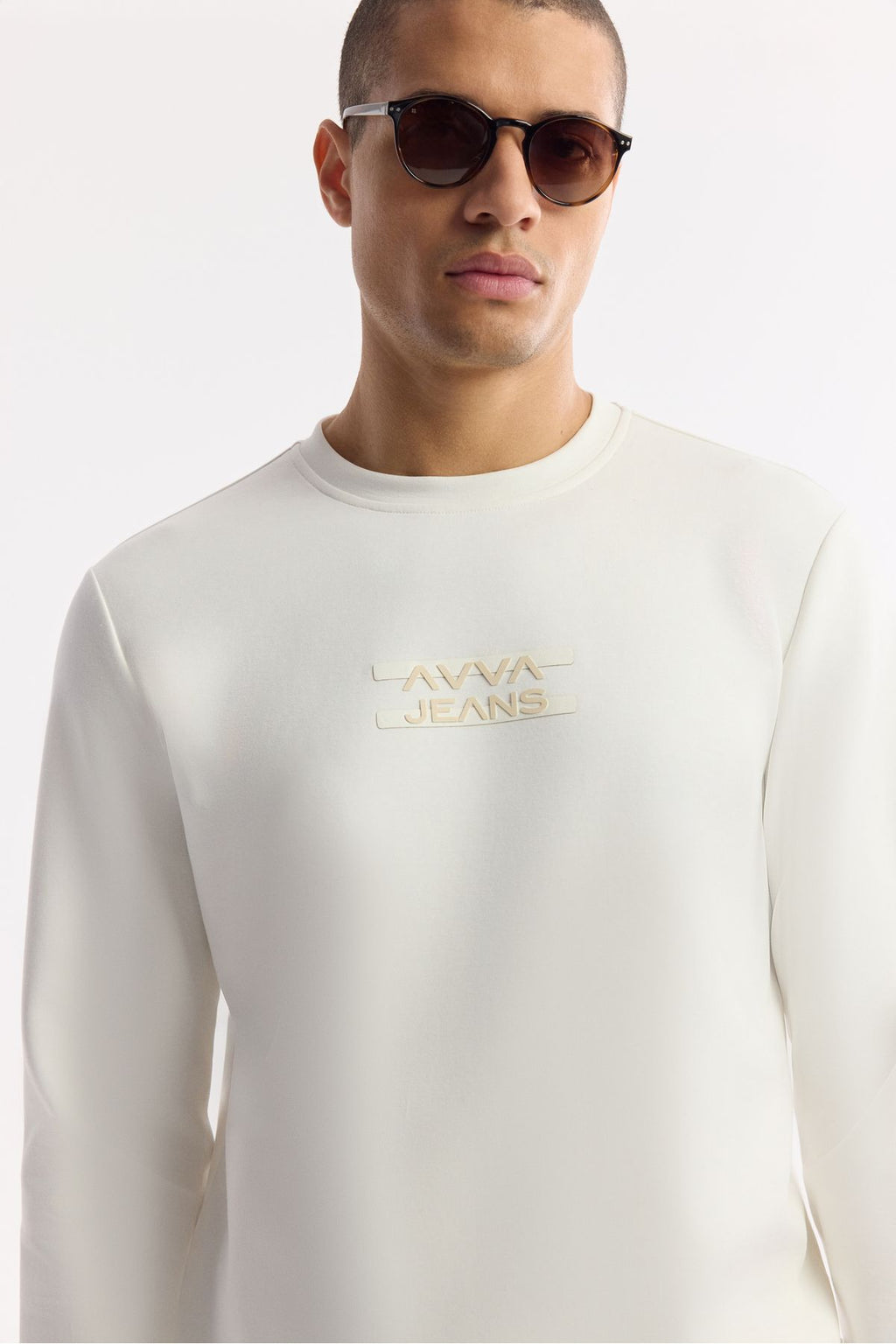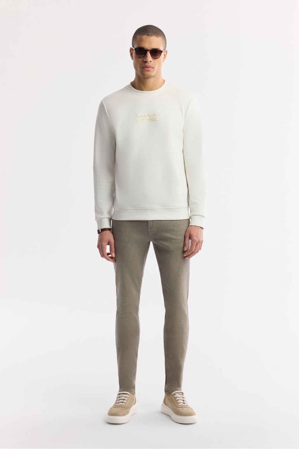 Men's Ecru Bicycle Collar Silicone Transfer Printed Interlok Sweatshirt A51y1204