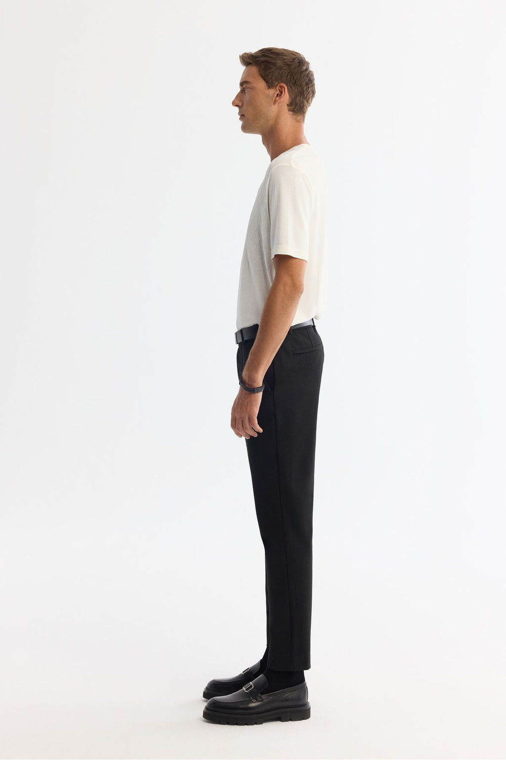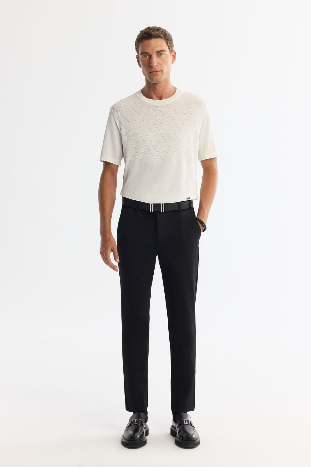 Men's Ecru Bicycle Yaka Jacquard Rayon Triko T-Shirt A42y5008