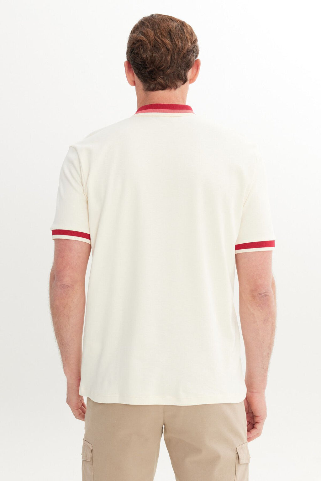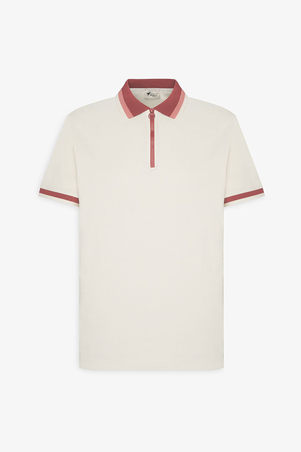 Men's ecru burgundy regular fit comfortable cut Polo Yaka 100 %Cotton T -shirt