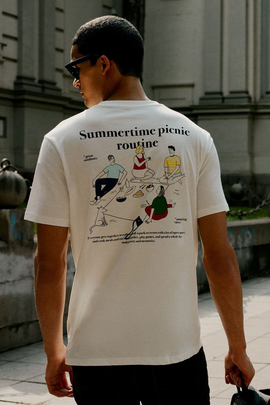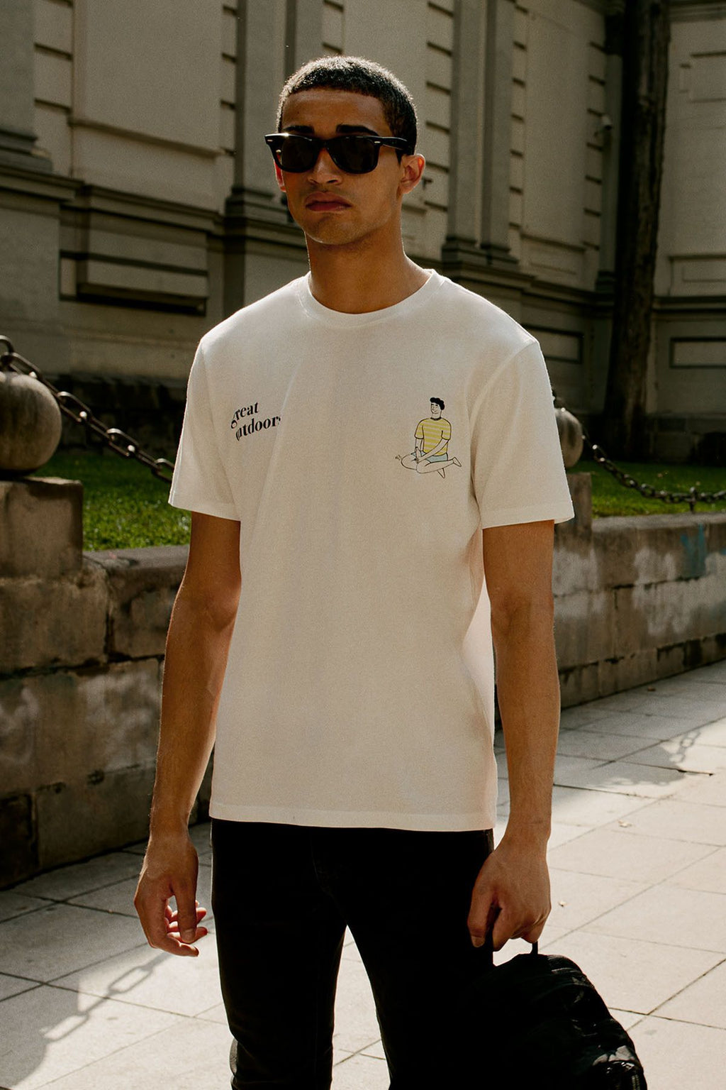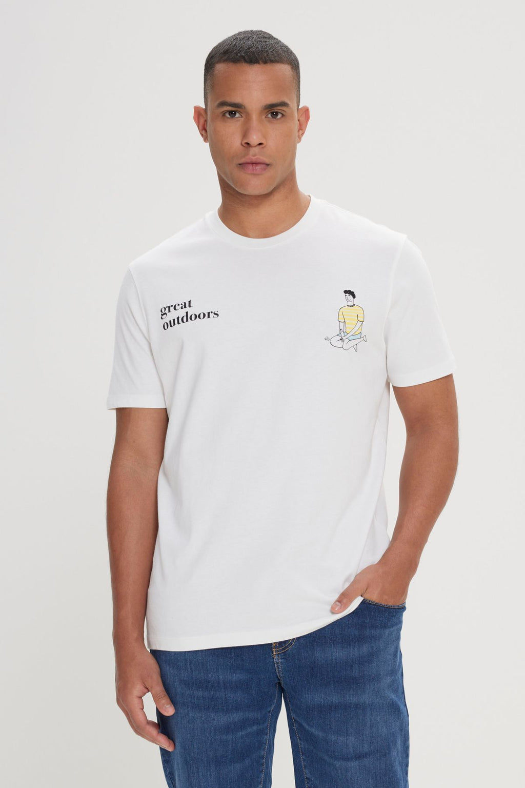 Men's Ecru Comfort Fit comfortable cut 100 %cotton soft textured printed T -shirt