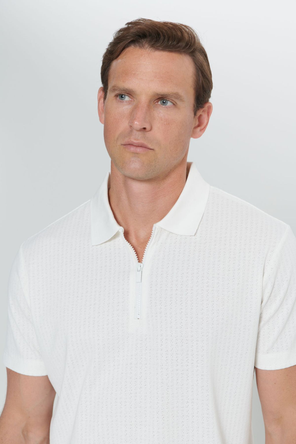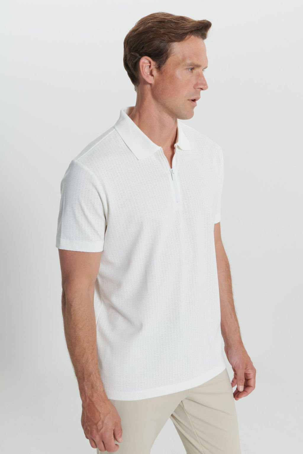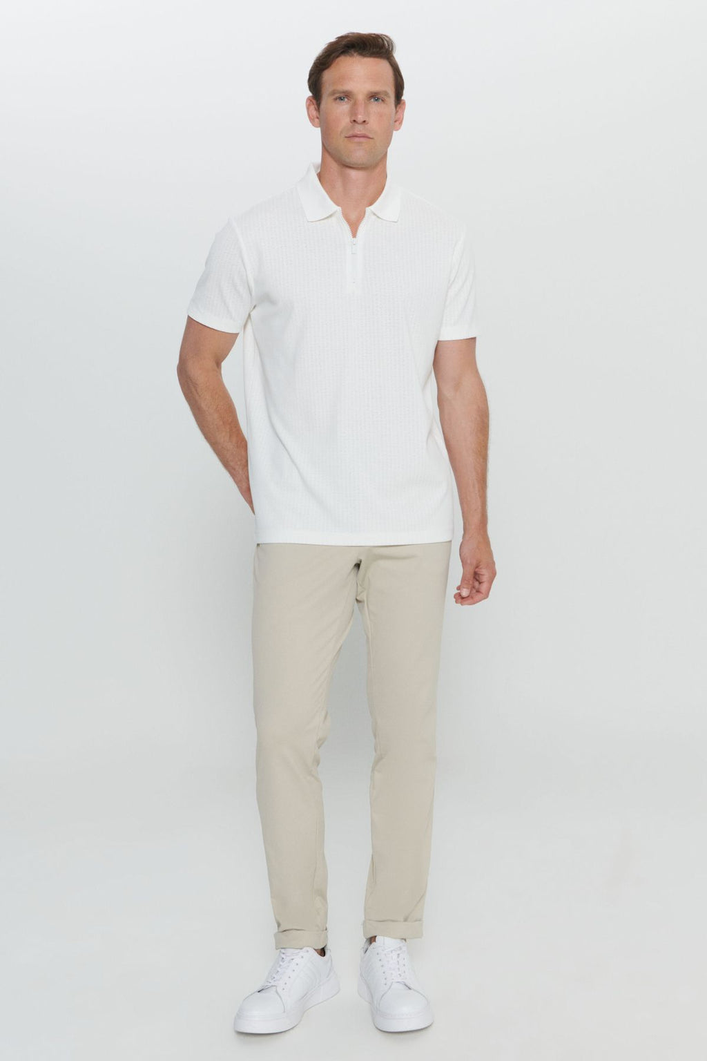 Men's Ecru Cotton Standard Fit Normal Cut Flexible Polo Yaka T -shirt