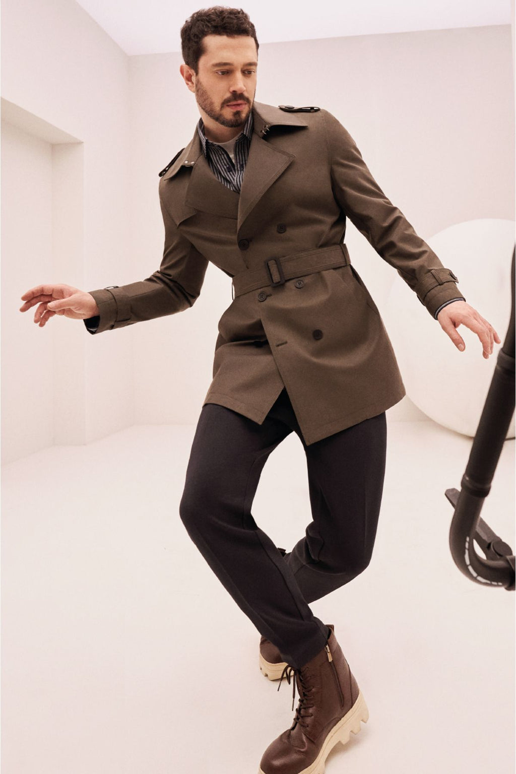 Men's Ecru Half Fisherman Collar Short Sleeve Knitwear T-Shirt B005025
