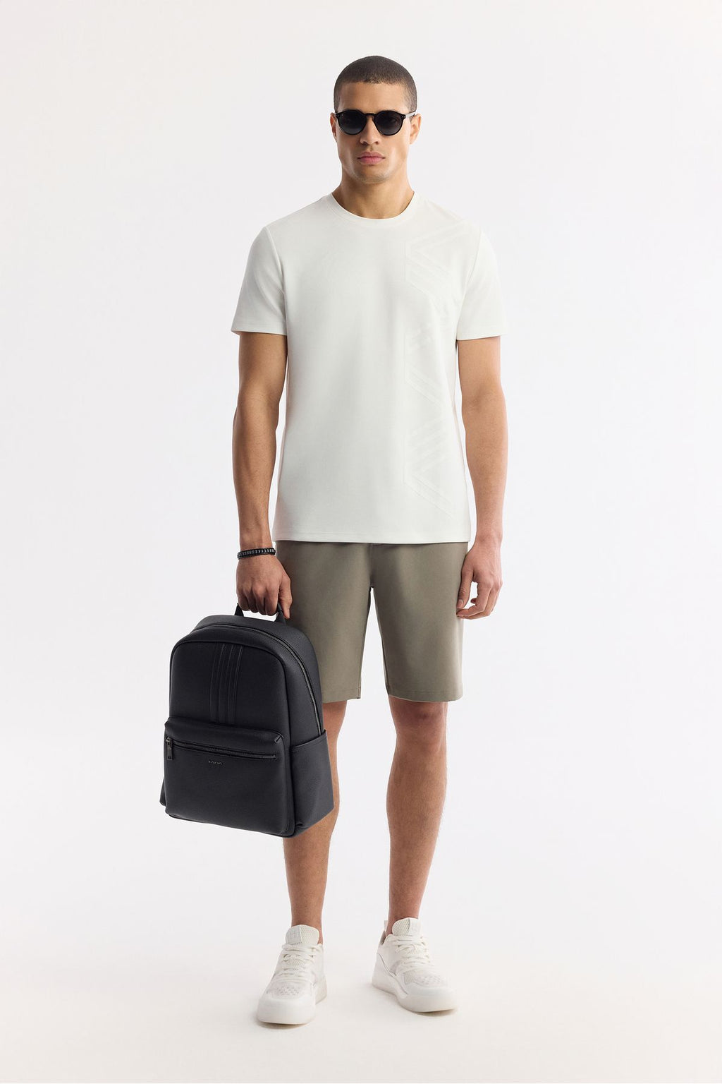 Men's Ecru Printed Bicycle Collar Interlok T-Shirt A41y1175