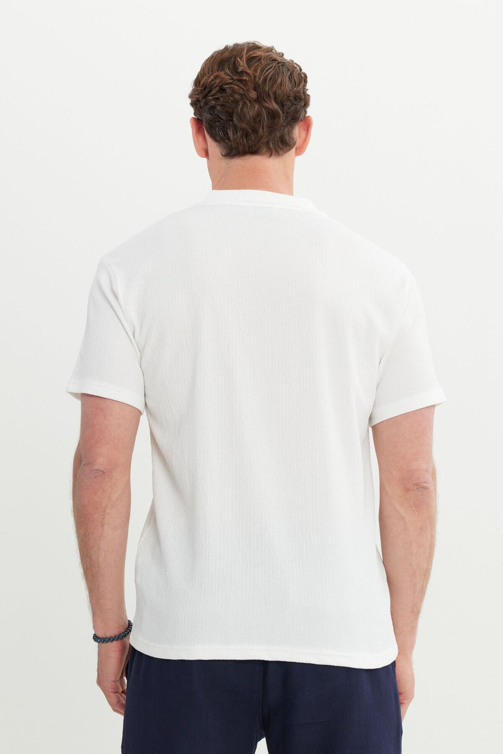 Men's ecru relax fit comfortable cut Polo Yaka T -shirt