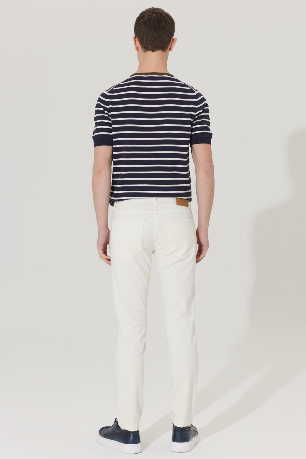 Men's ecru slim fit narrow cut 5 pocket cotton canvas flexible chino pants