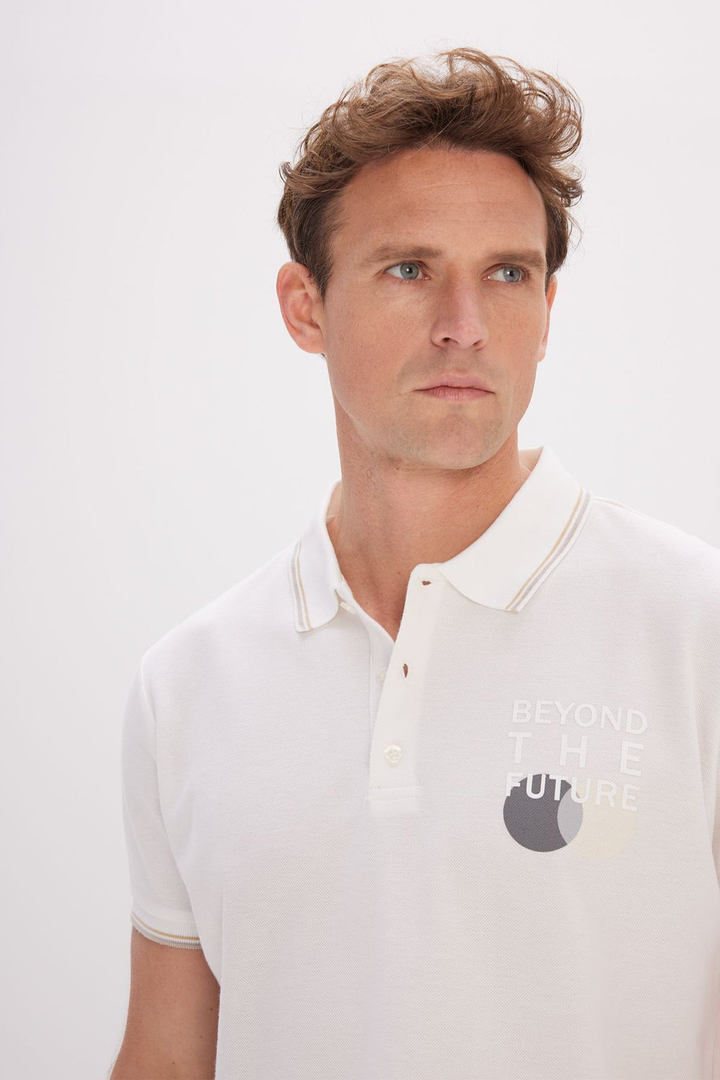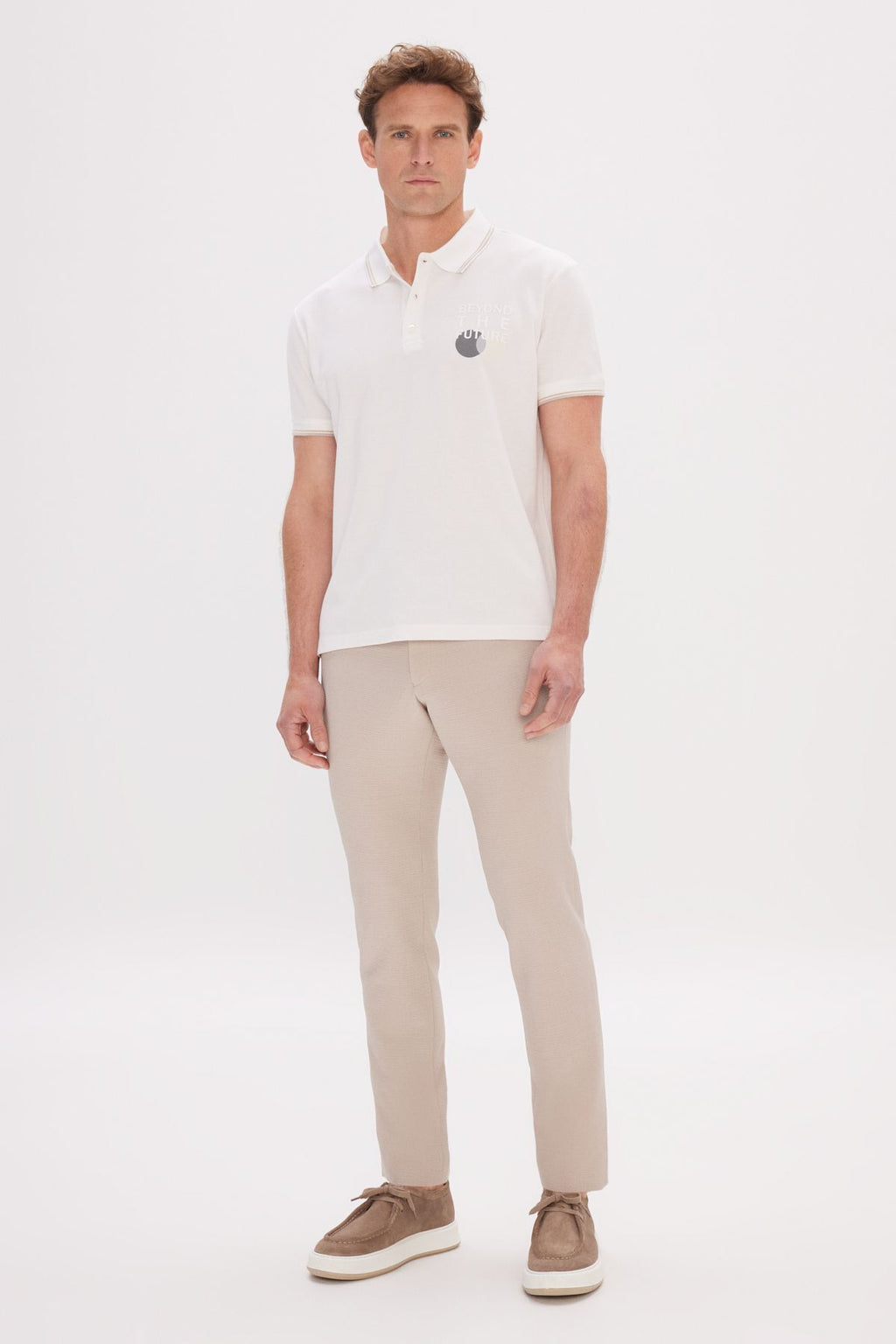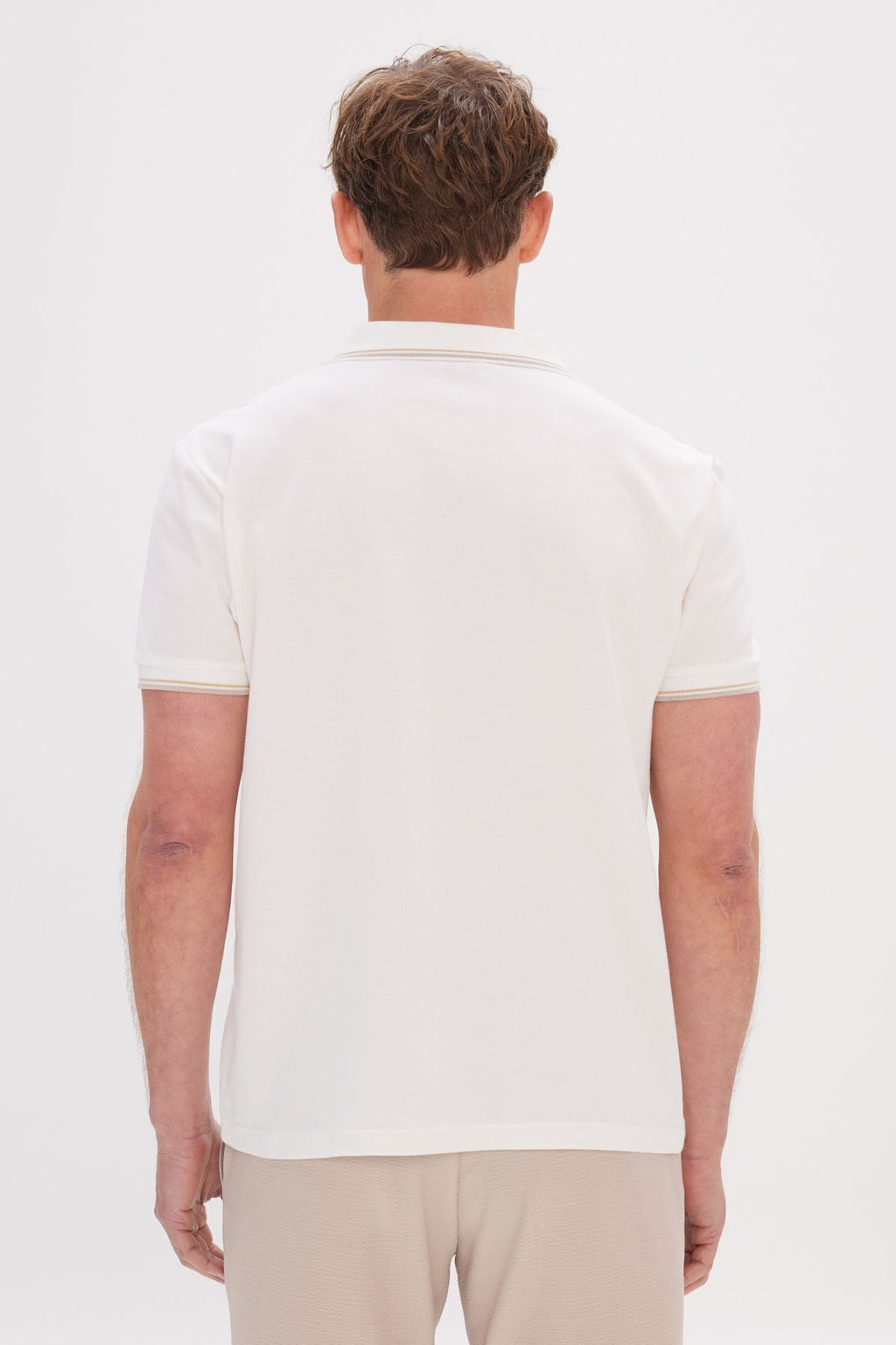 Men's Ecru Standard Fit Normal Cutting 100 %Cotton Printed Polo Yaka T -shirt