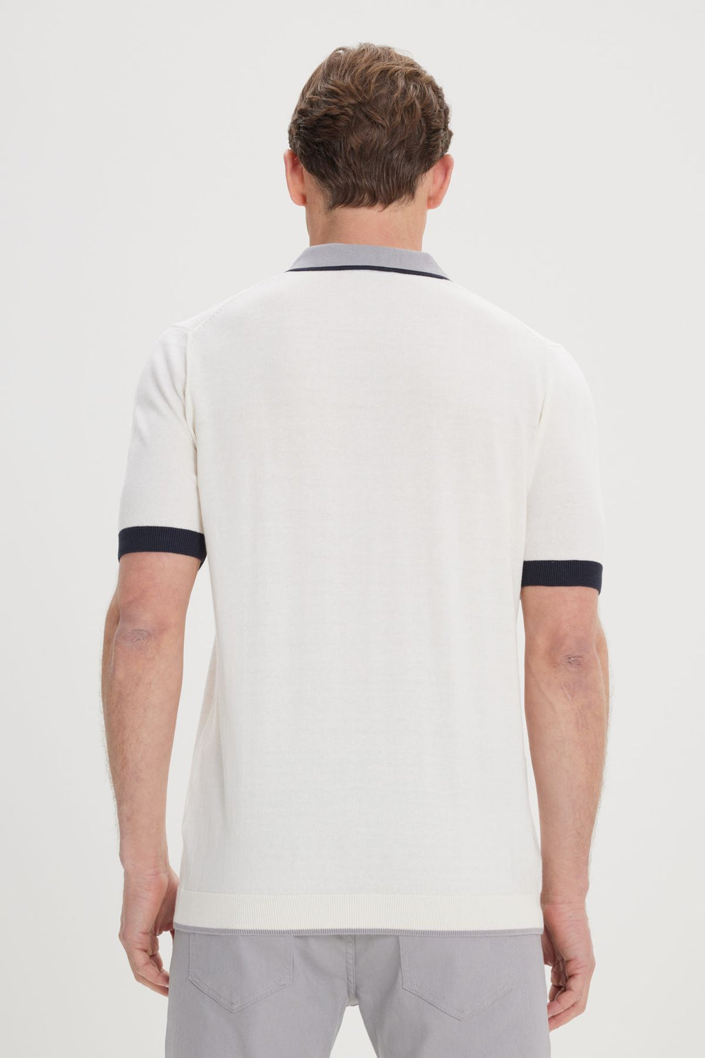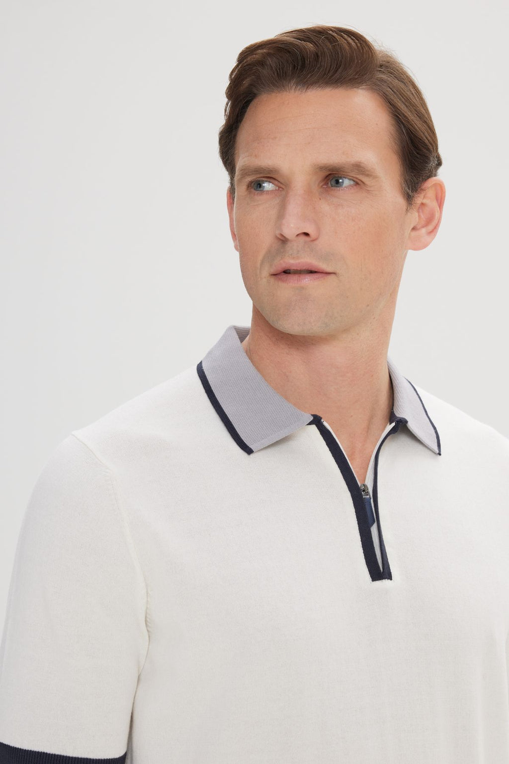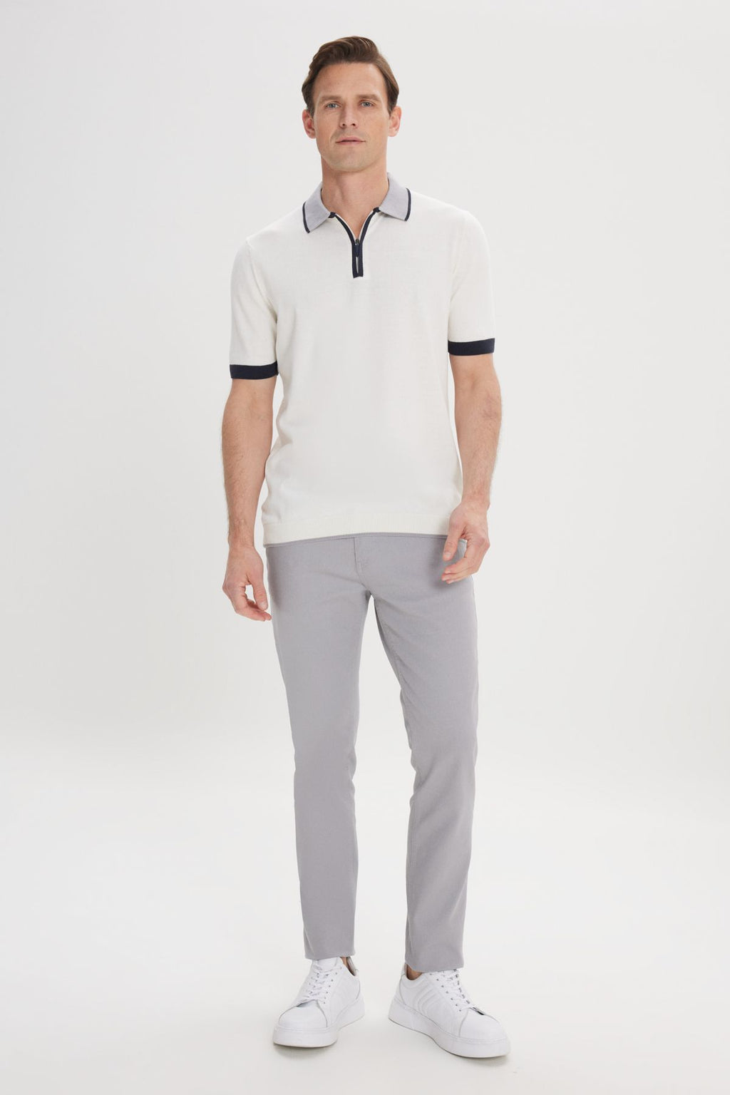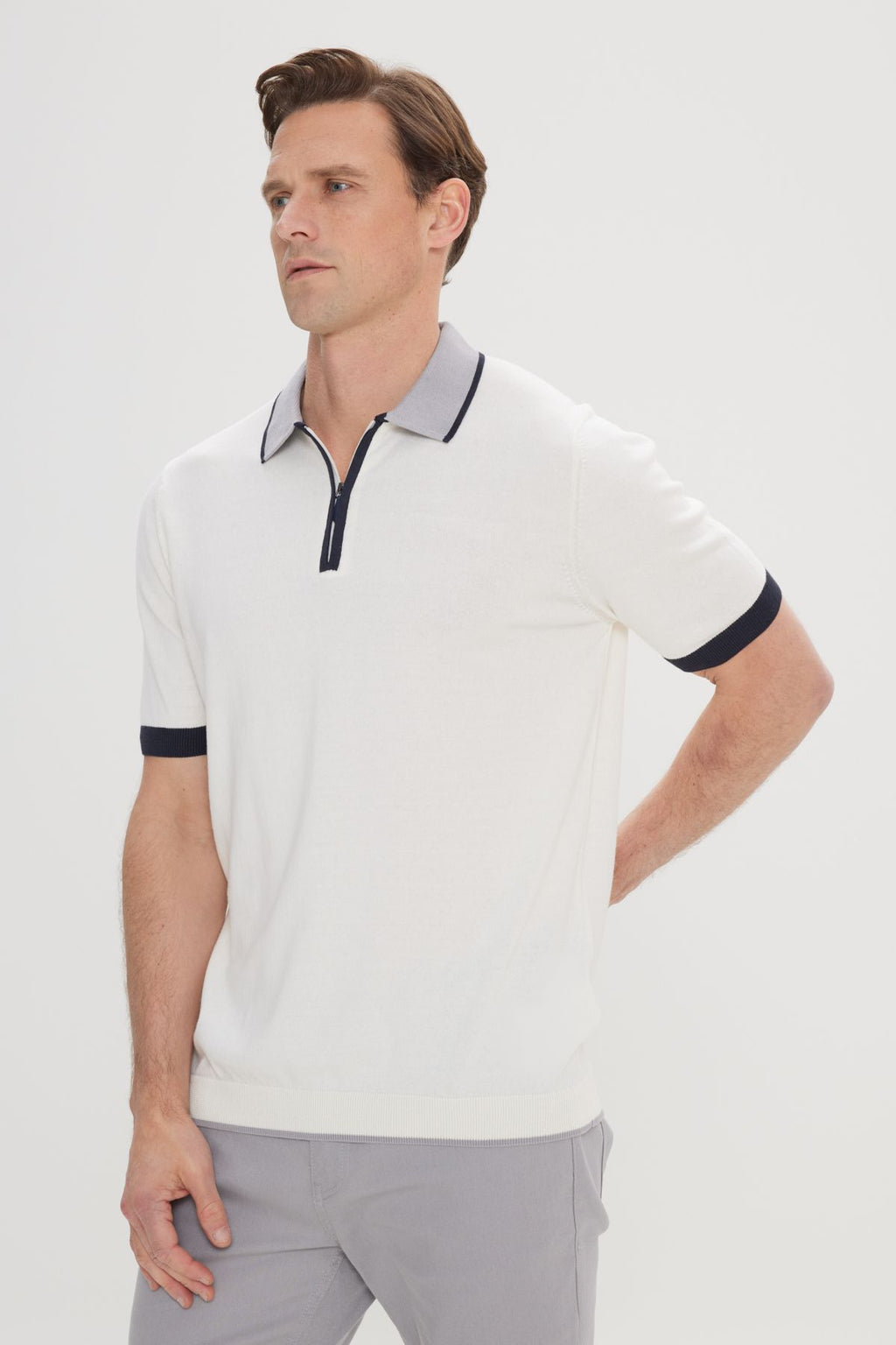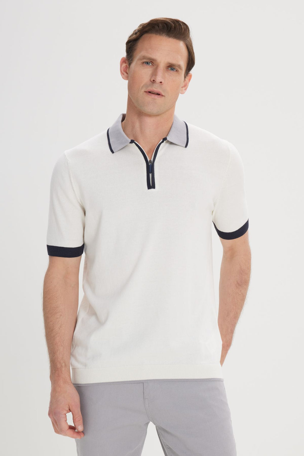 Men's Ecru Standard Fit Normal Cutting 100 %Cotton Zipper Polo Yaka Triko T -shirt