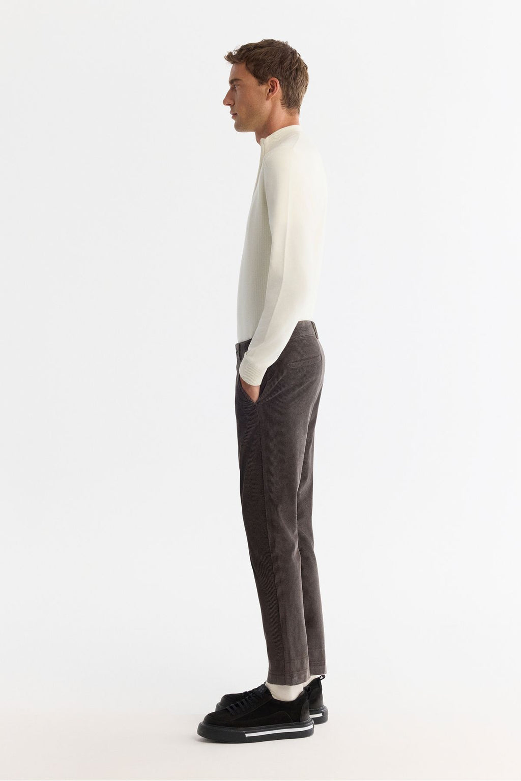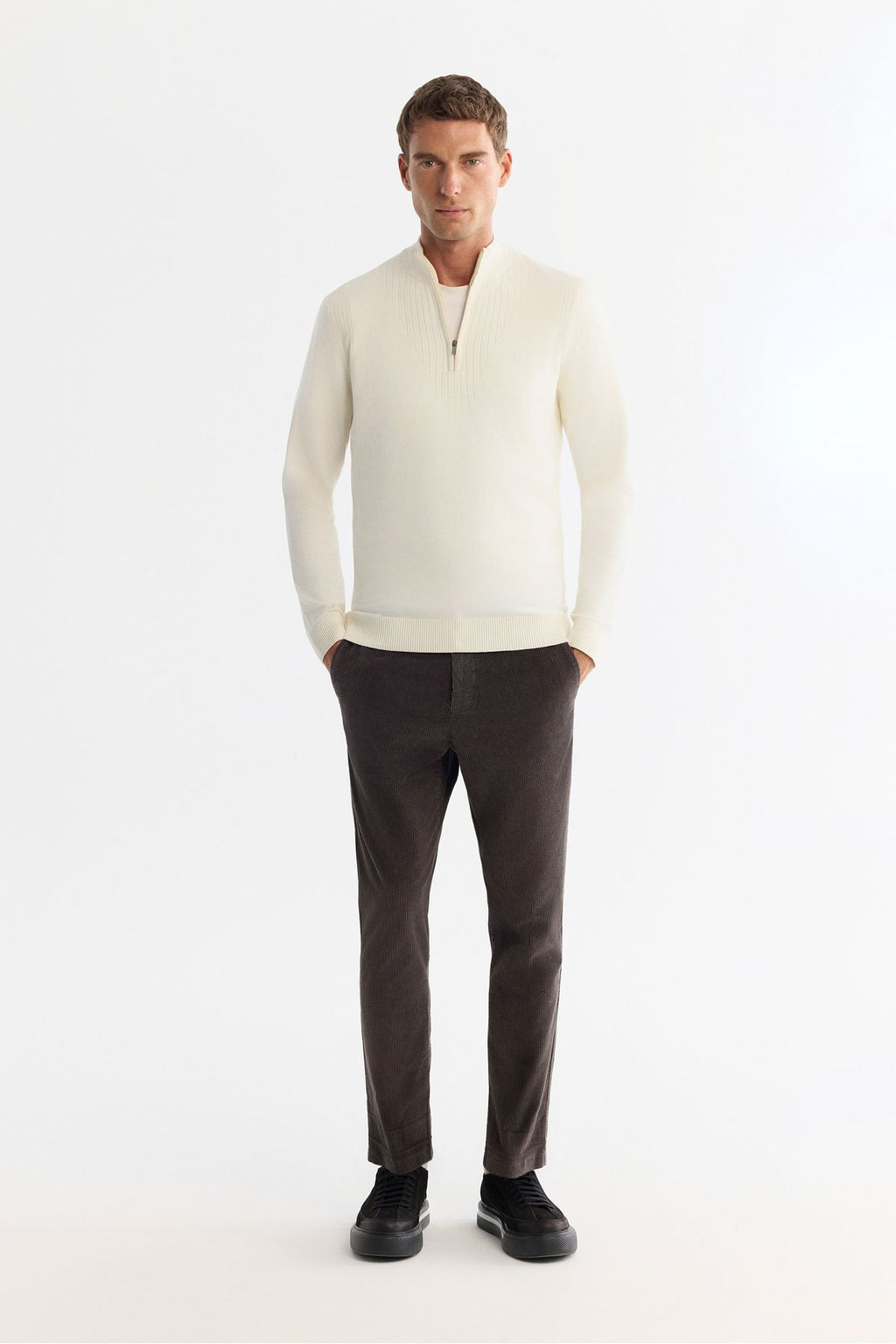Men's ecru upright collar zipper line Detailed Soft Touch Knitwear Sweater A42Y5071