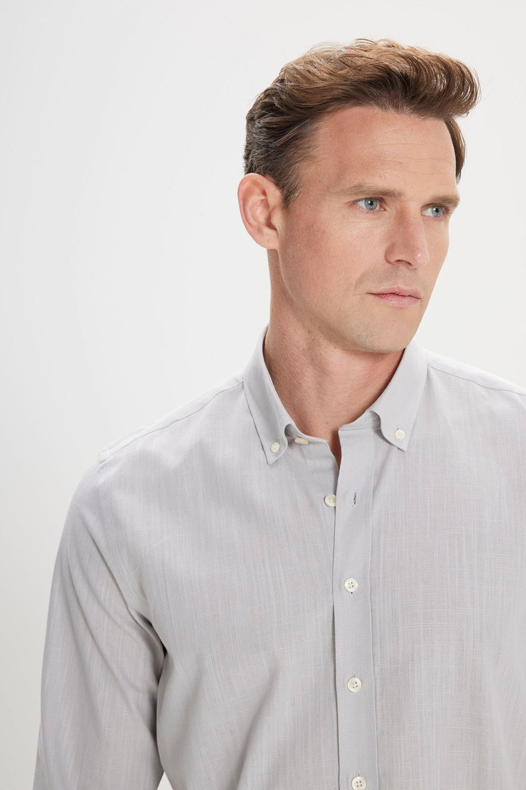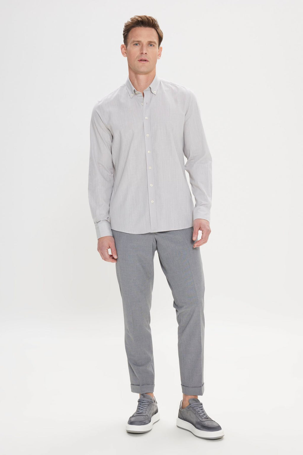 Men's gray 100 %cotton breathing fabric pennant oxford slim fit button collar shirt