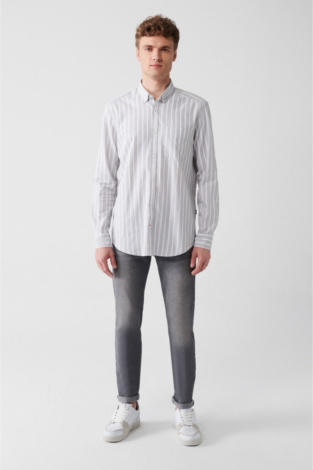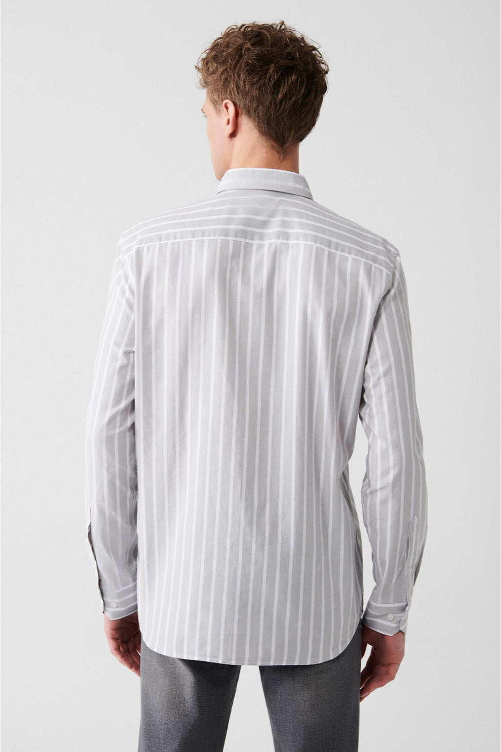 Men's Gray 100 %Cotton Oxford striped shirt A31y2055
