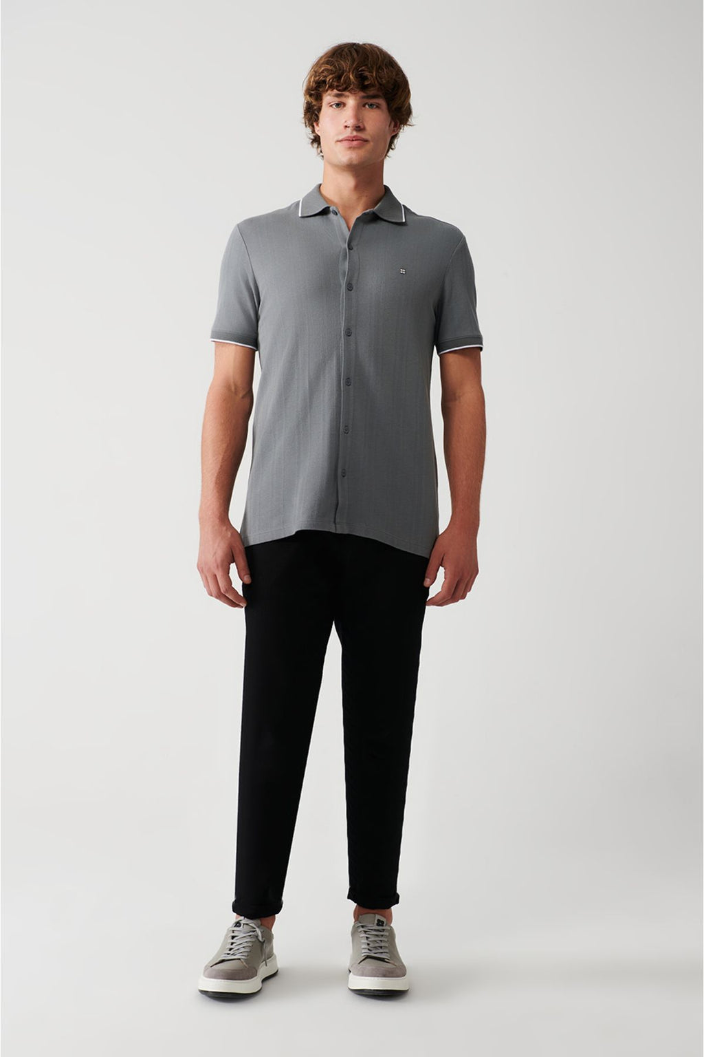 Men's Gray 100 %Cotton Ribana Short Sleeve Shirt A31y2239