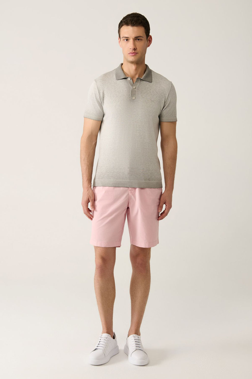 Men's gray 3 button paint effects Polo collar knitwear T-shirt A41y5114