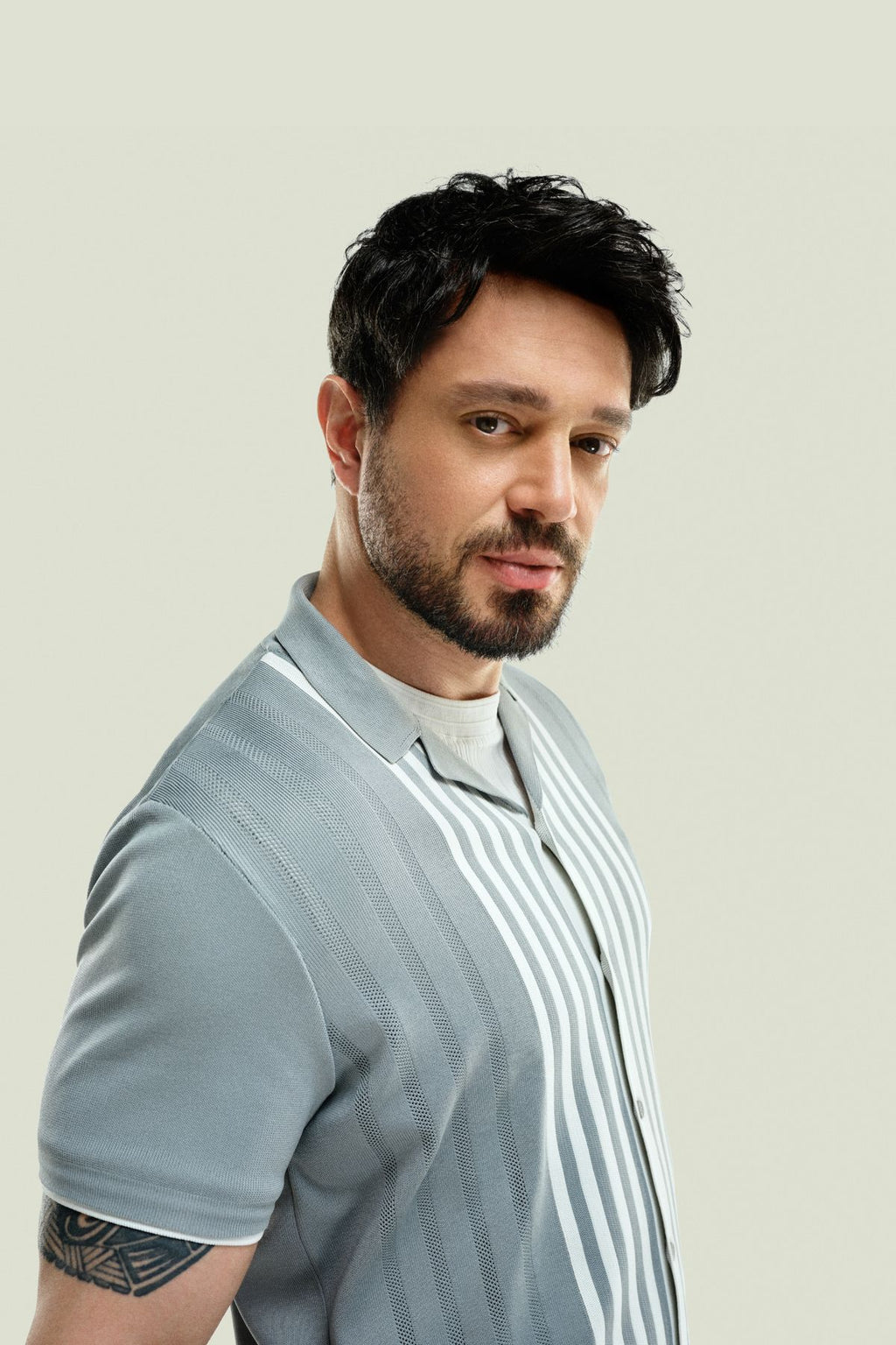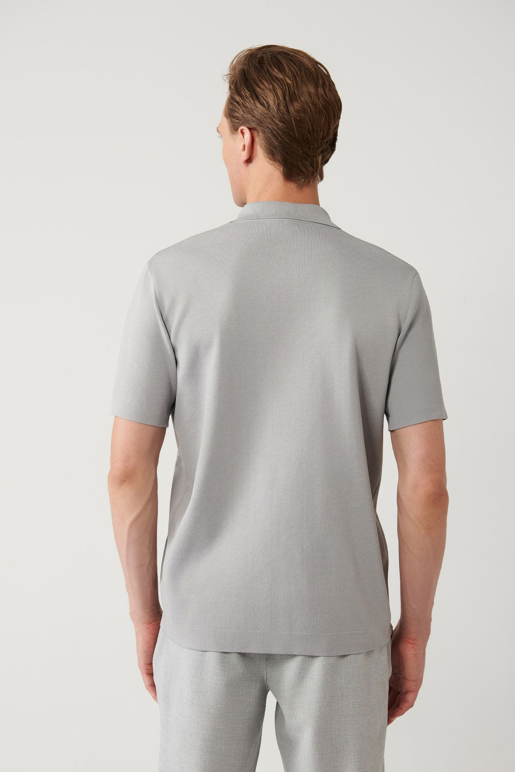 Men's gray akk collar front buttoned striped knitwear T-shirt A41y5054