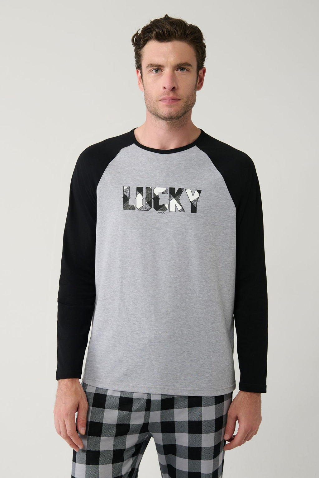 Men's gray bike collar cotton reglan special box pajama set E003305