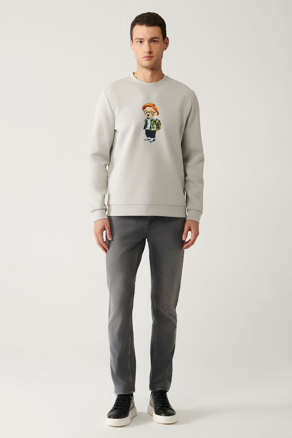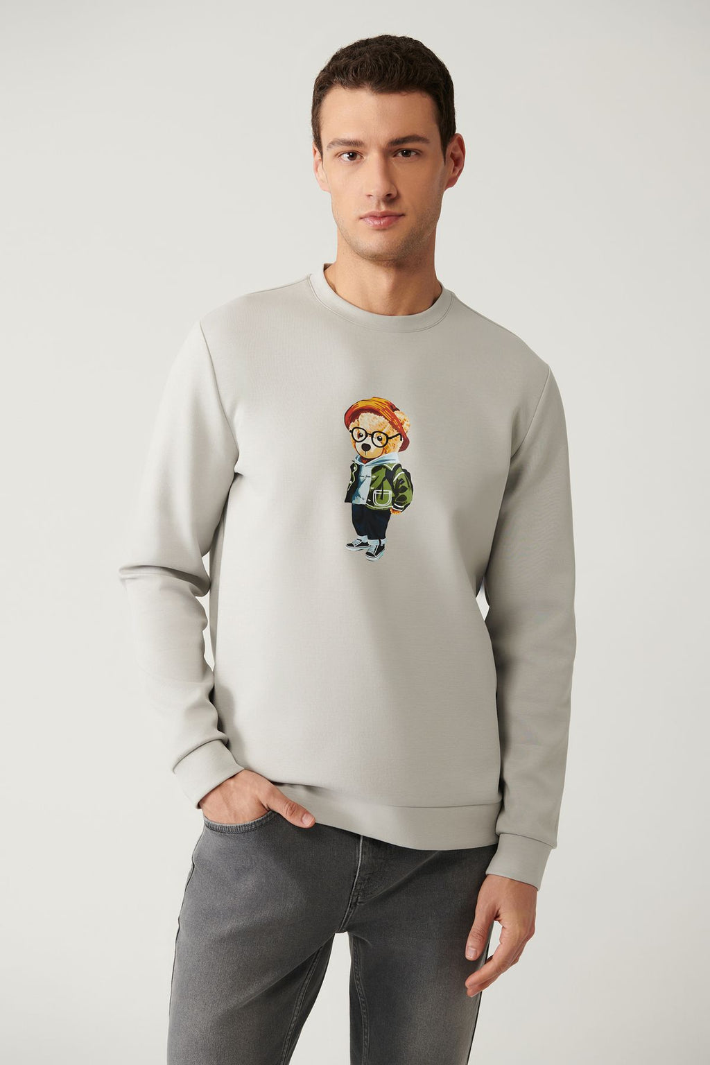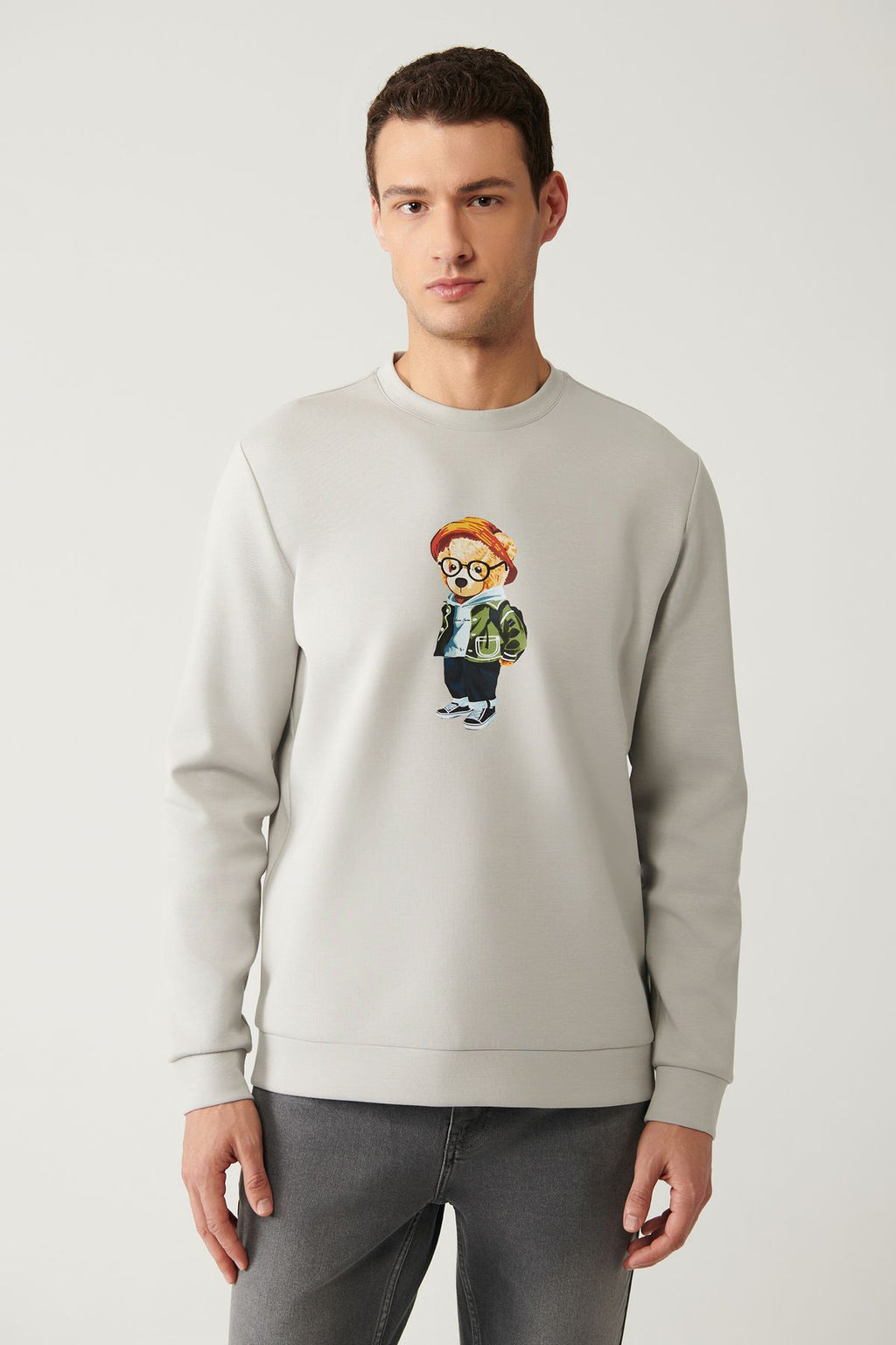 Men's gray bike collar interlok printed sweatshirt A41y1248