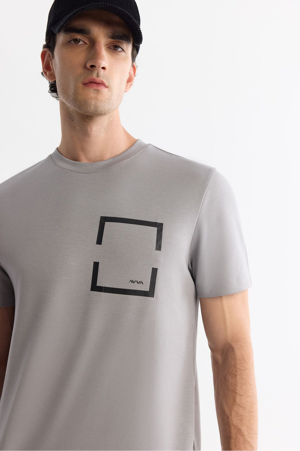 Men's gray bike collar printed elastan t-shirt A42y1020