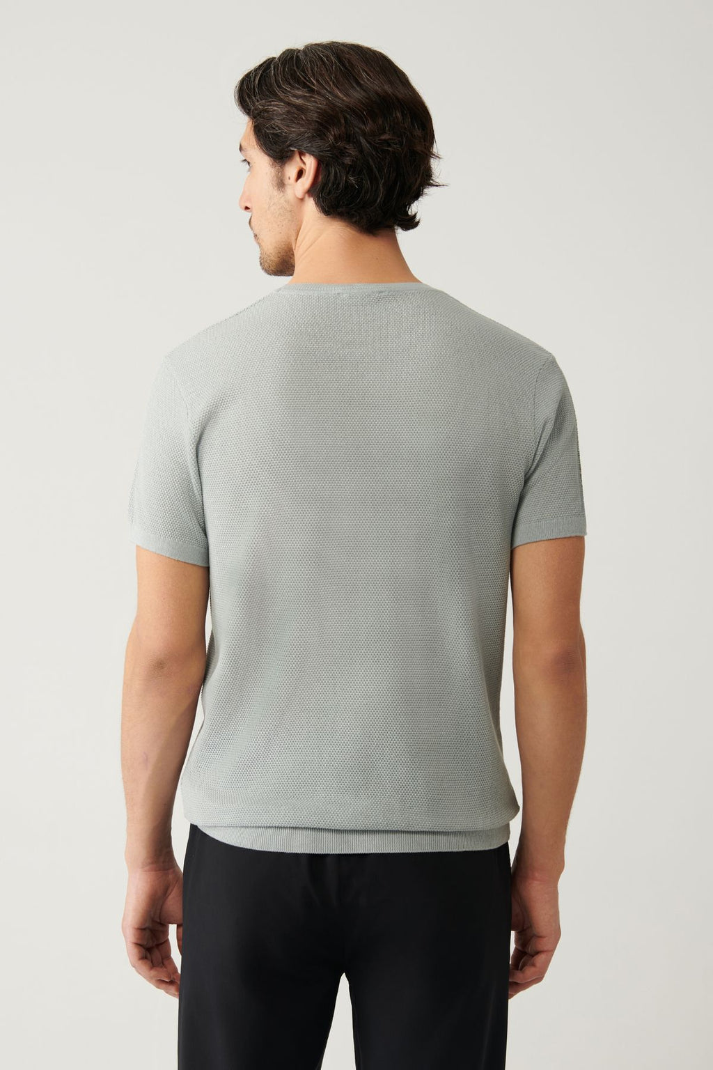Men's gray bike collar textured cotton knitwear T-shirt E005027