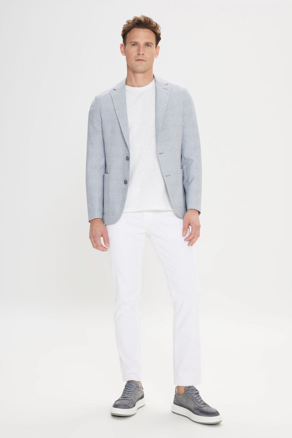 Men's Gray-Blue 360 Slim fit narrow-cut mono collar patterned blazer jacket