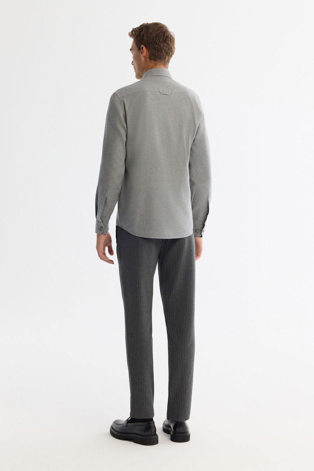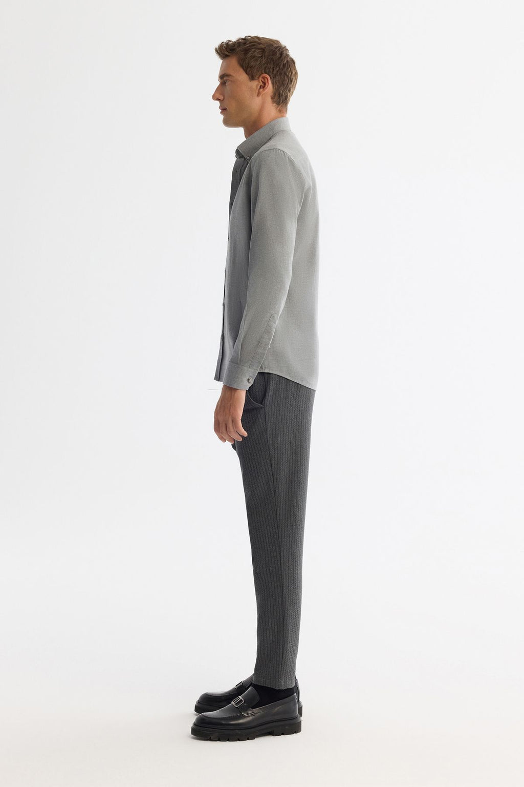 Men's gray button collar 100 %cotton shirt B002033