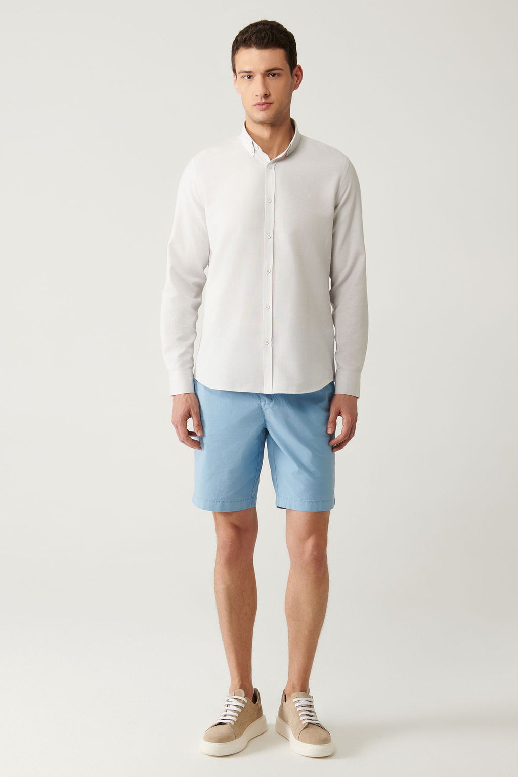 Men's gray button collar easily ironed cotton Oxford Shirt E002000