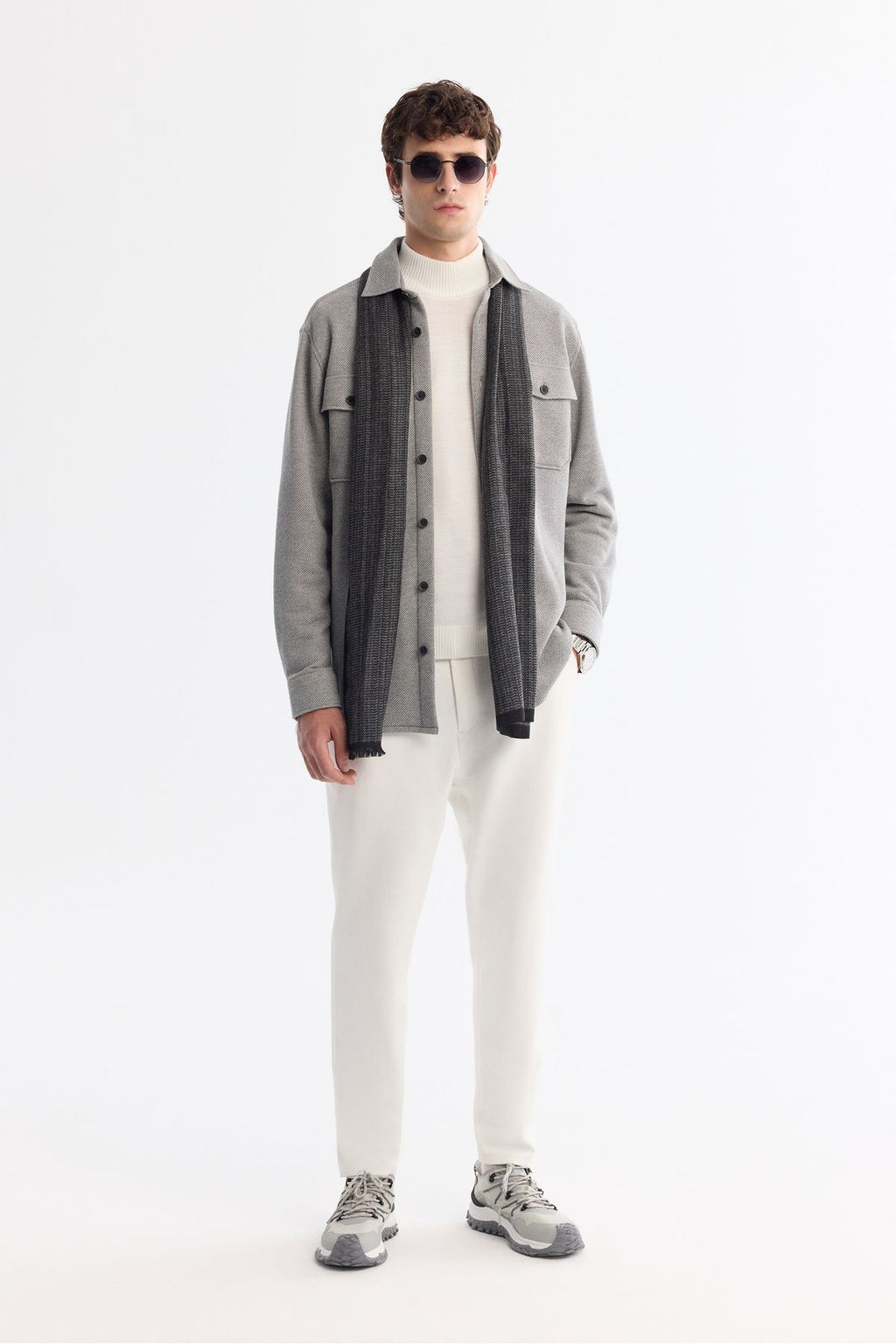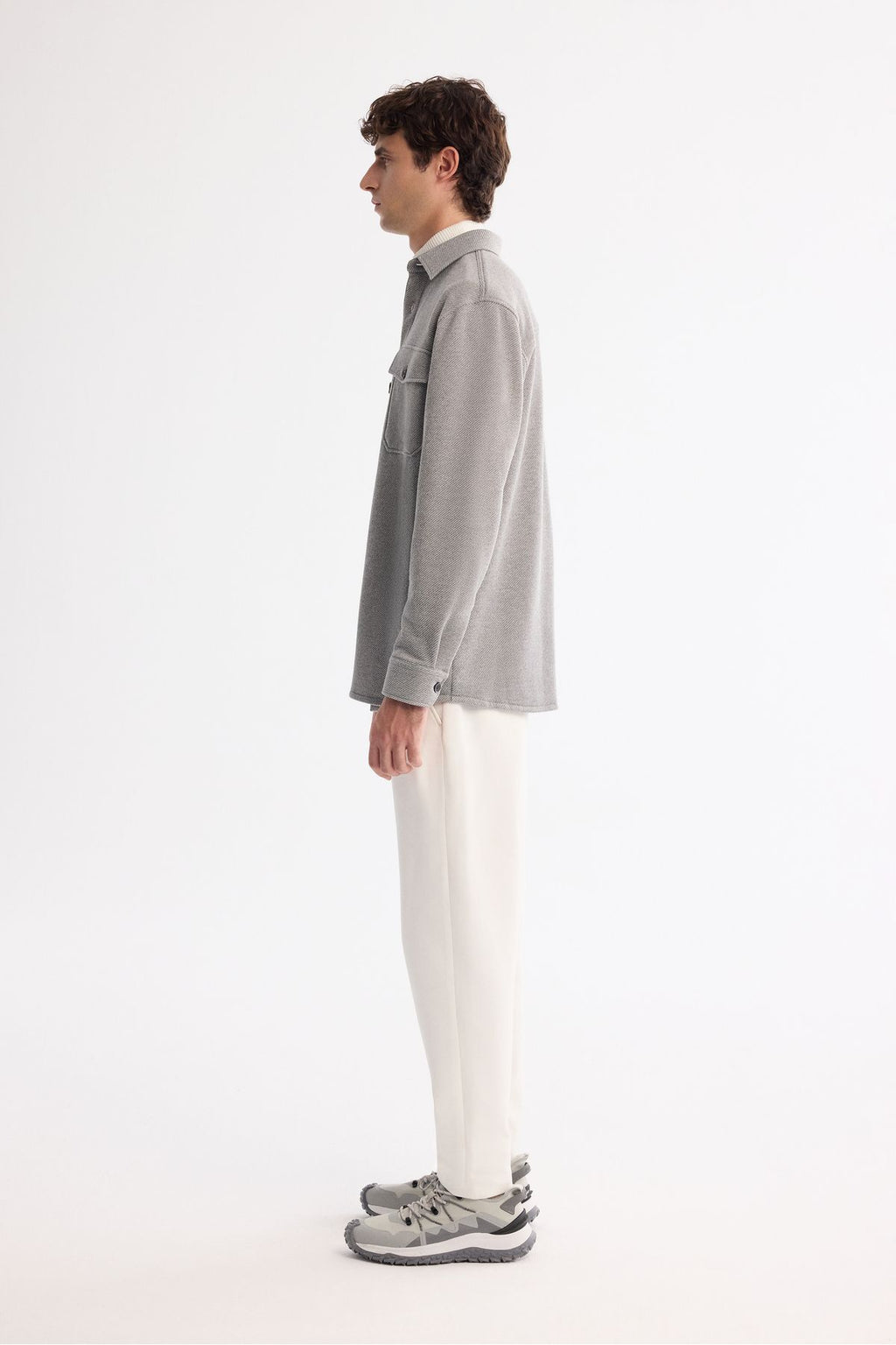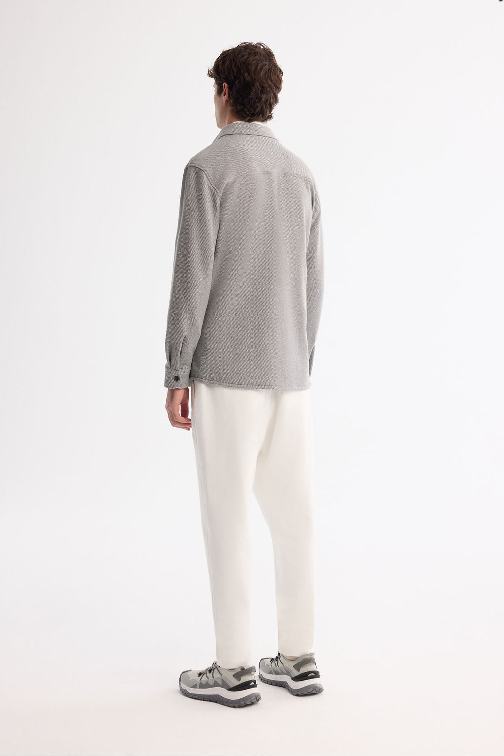 Men's gray classic collar cotton knitted shirt jacket A42y2176