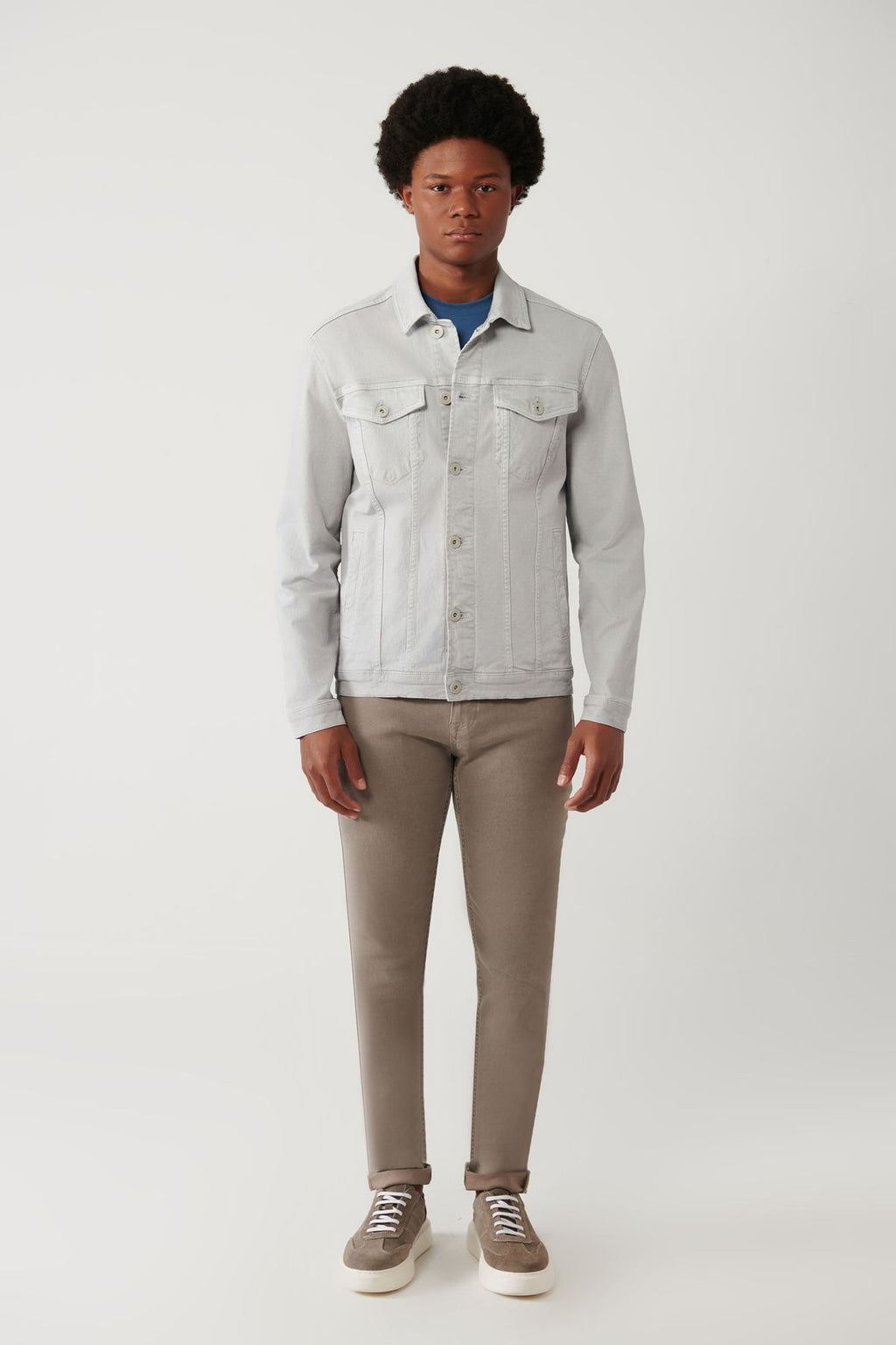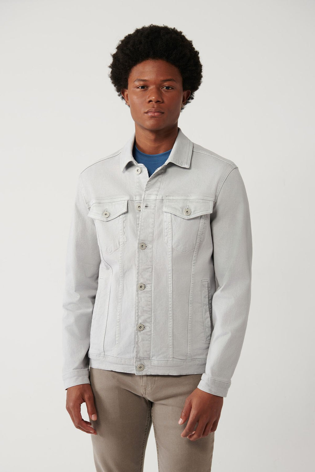 Men's Gray Classic Neck Garment Dyed Pocket Denim Jacket A41y6020